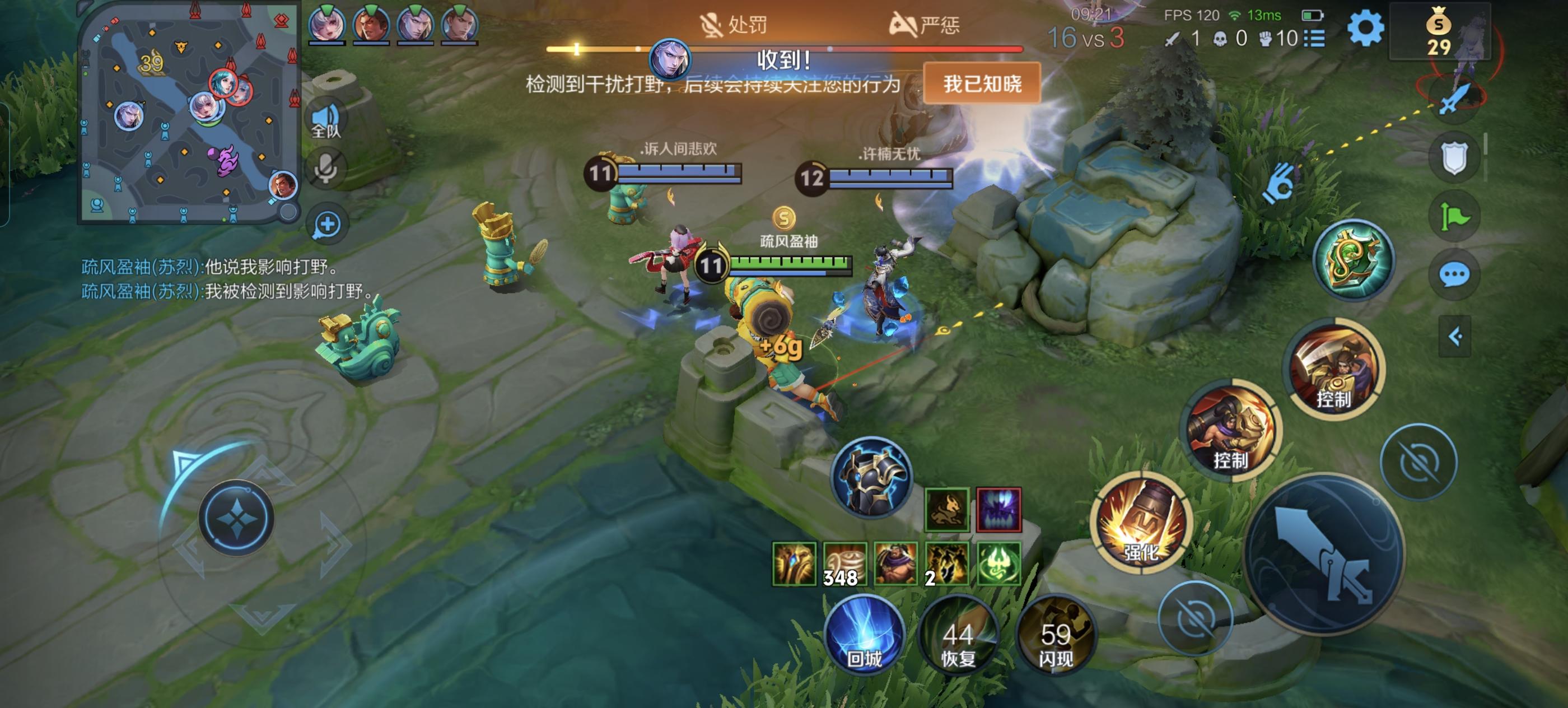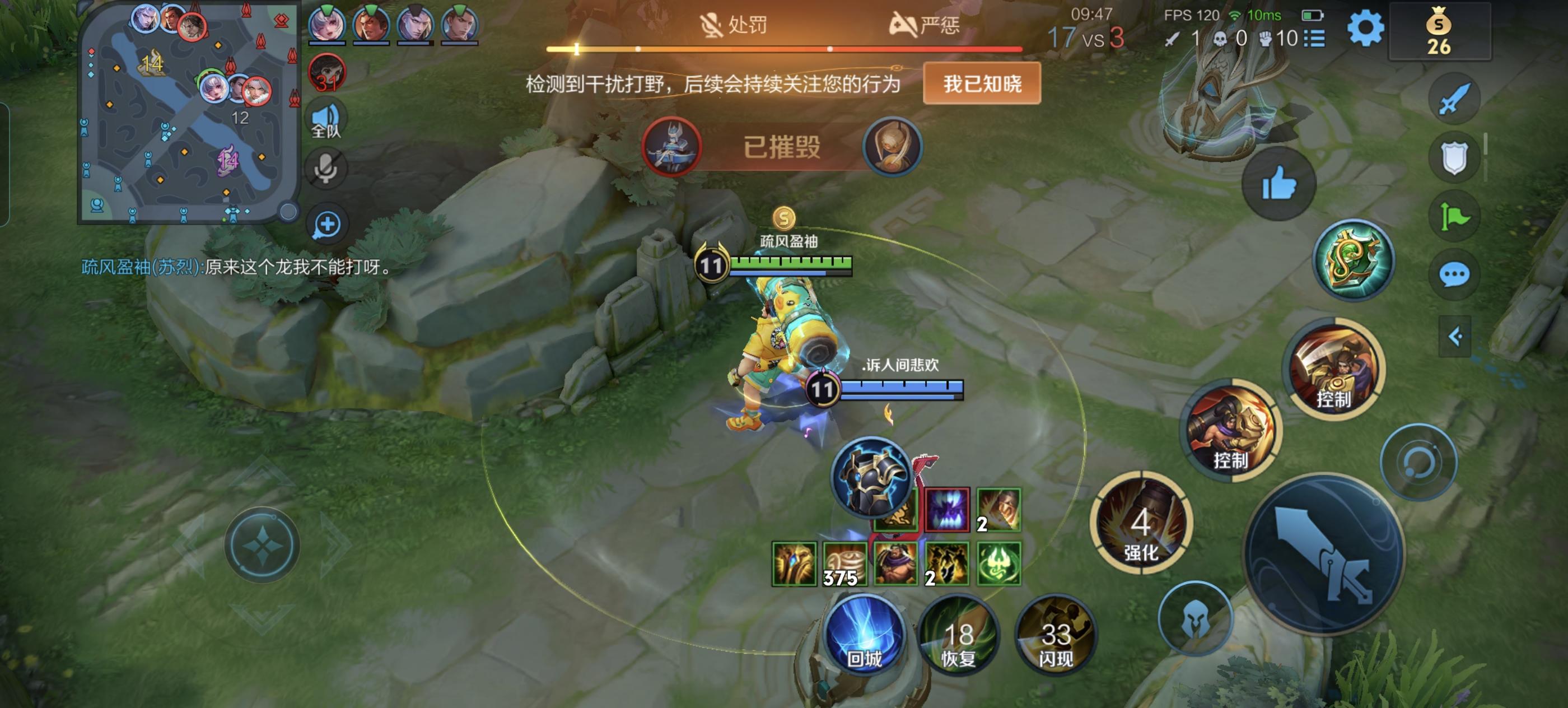 超标的对手以及因为帮打野打龙被警告的我。原来打龙也可以是干扰打野啊。