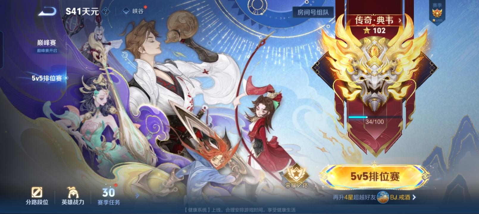 虽然含金量确实不咋地,但是新号一路单排400多场冲上来还是觉得很努力了,铭文不齐,队友其实不差,主要是人机和进游戏就大退的恶心玩意太多了,99星九上九下,最后一把拿了个金牌98直升100,拿到印记就行了,以后打巅峰赛为主了~