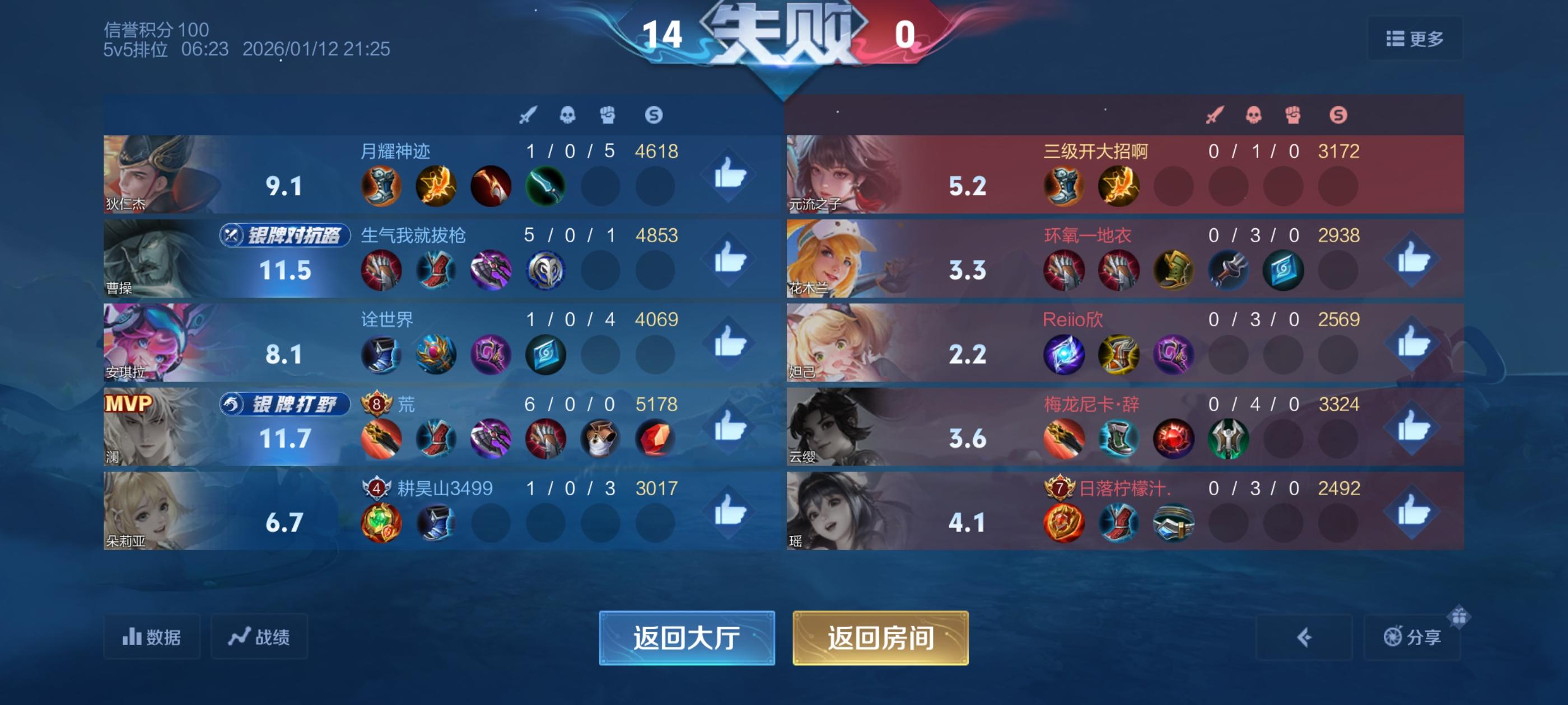 我一直在哭 没想到能打这么菜 打了好多局 都是这样的评分