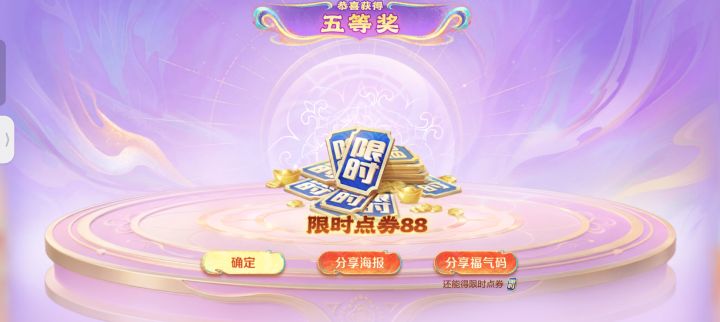 王者荣耀送限时点券【中级福气码安琪拉RLDG4J】中级福气码,使用可得20限时点券,复制口令传递心愿吧!