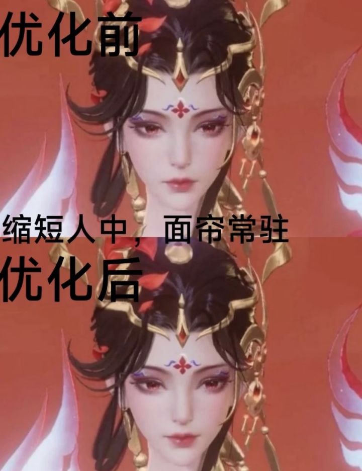 纯主观:1️⃣重新捏脸 我可以接受实装表现比如CG 毕竟不是一个量级的制作 但最起码要让玩家能看出来和宣传图是差不多的才行啊 目前问题最大的就是刘海太薄了 露出的额头部过多 且脸型是那种网红脸 像极了流水线的脸模 看着不像貂蝉 如果观察仔细的话 CG宣传片和海报图的脸都是有些偏鹅蛋脸的下巴也没那么尖 且五官非常协调 眼影是美的 口红是明显的 所以看宣传图的时候 会不自觉的惊叹她的颜 不要说工期紧