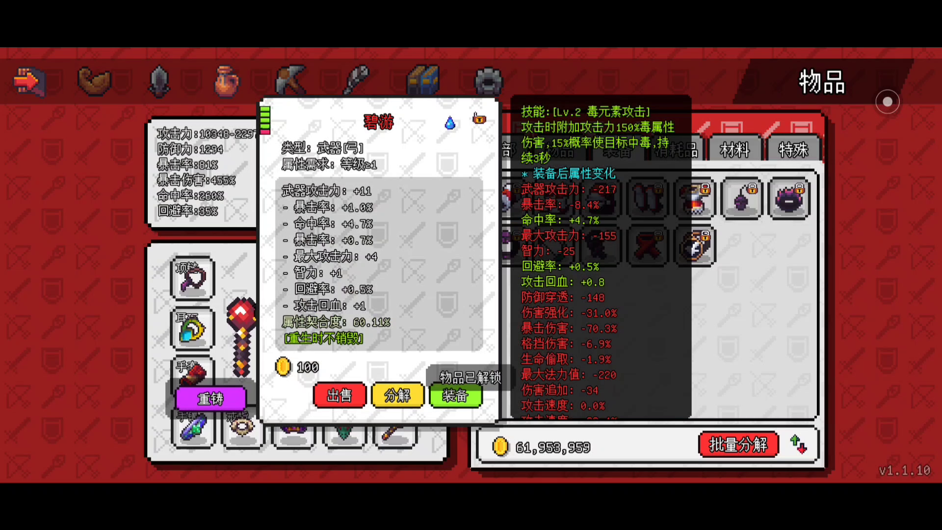 解锁重置属性或者强化后上锁 锁不上,需要退掉装备详细页面再点装备上锁才能锁定装备😂😂😂原来我昨天是这样把装备不知明的情何况下自己给分解了