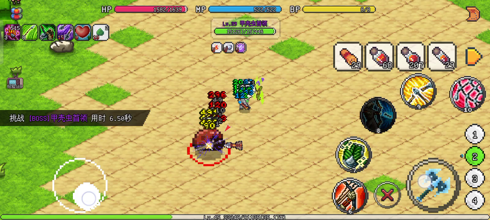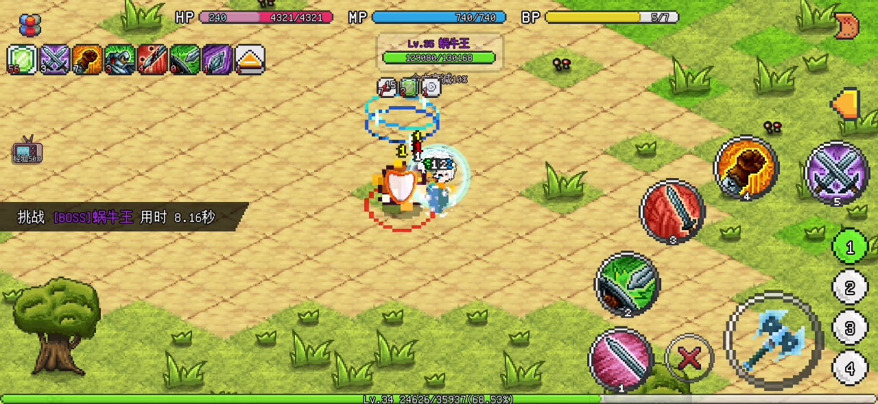 蜗牛王和那个甲壳虫王,技能机制都差不多,最主要就是秒伤害要够,我打这个boss伤害还是不是很够,打了8分钟才打死,主要是两个技能,一个是图标剑一样的东西,出现了你打boss就会被晕,出现规律是绿色方块图标出现2次以后会在第二次绿色方块图标结束以后触发一次(基本上都是这个规律,但是有几次还没结束就出现了qwq),同时boss会触发回血,这个回血一次大概2万多,但是有几次就回了几千,具体计算机制不是很清楚,详细的可以看我视频。