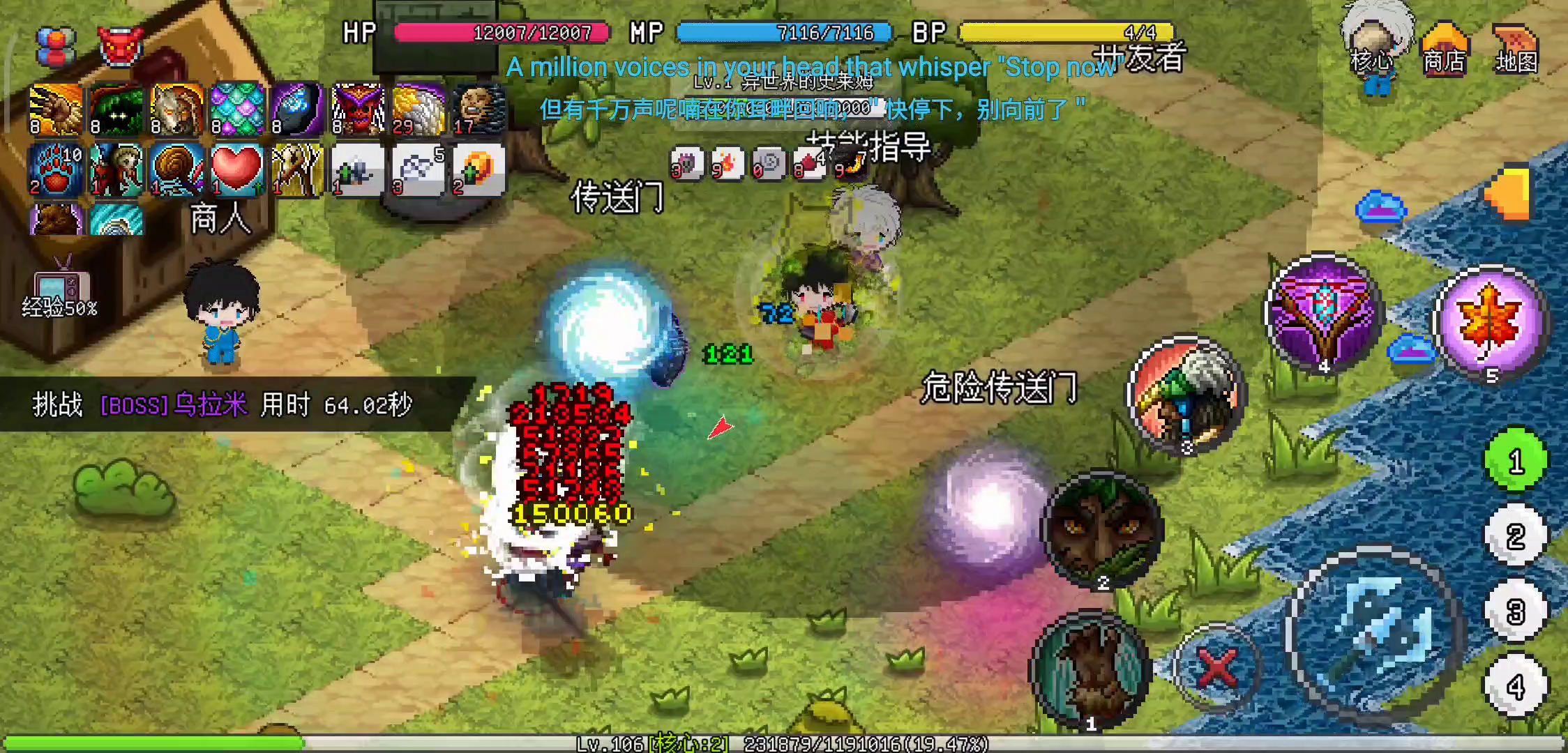 把a拉到这位置,另外两只在桥那没过来,突然就出现boss乌拉米的这个,然后打死a后另外两只史莱姆突然就被拉了过来,就像视频这样,也不知道怎么触发的,打a期间死了两次,没看视频。