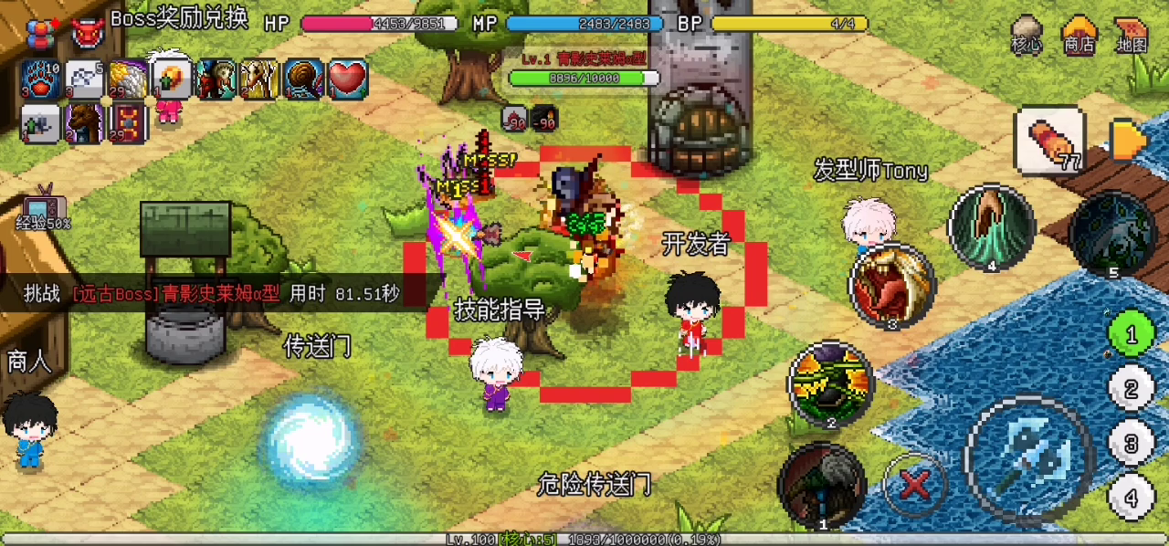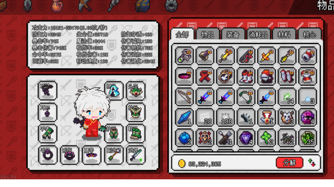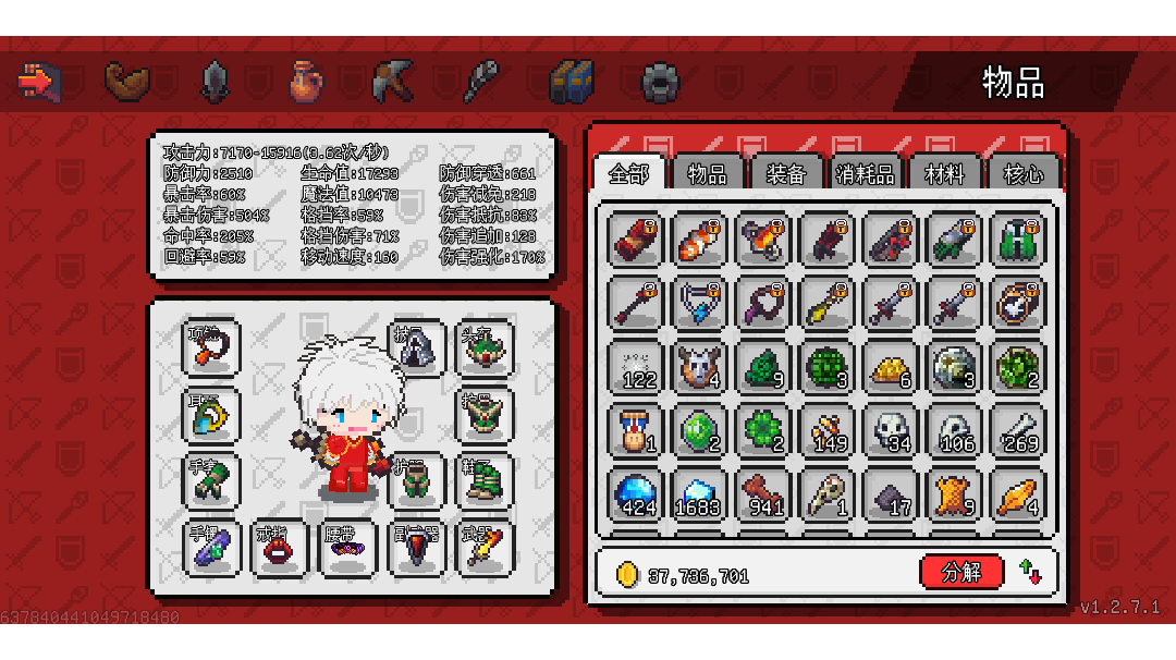 打算继续转生,所以就没花功夫搞其他装备。。总之打清影就两点,更多的伤害类型和更多的输出时间占比。。伤害类型就不用说了,一堆能触发伤害效果的就行(记得把命中天赋也带上,叠伤害神器)。。然后就是输出时间占比,因为对面放技能是很频繁的,所以打这玩意好多时间都浪费在躲避上了,所以干脆就不躲了😂有了哥布林就可以强行扛对面一次技能,如果时间卡好的话甚至能连续扛它几套,不小心扛死了也没事,直接重生继续打就行了
