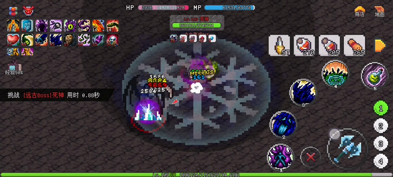 【第一次尝试蓝炎法师】 前两转都是血巫,说实在挺累的…… 于是脑子一热,玩了把蓝炎…… 我去,伤害很顶,很炸啊!😱😱 死神最快8秒,德古拉最快11秒…… 装备也没好好洗,随便兑了点伤害强化和暴击伤害,就可以随便刷他俩了…觉得还行。 装备就是龙玉法杖、魔力之语套、虚空戒指、龙神5件、无极披风。