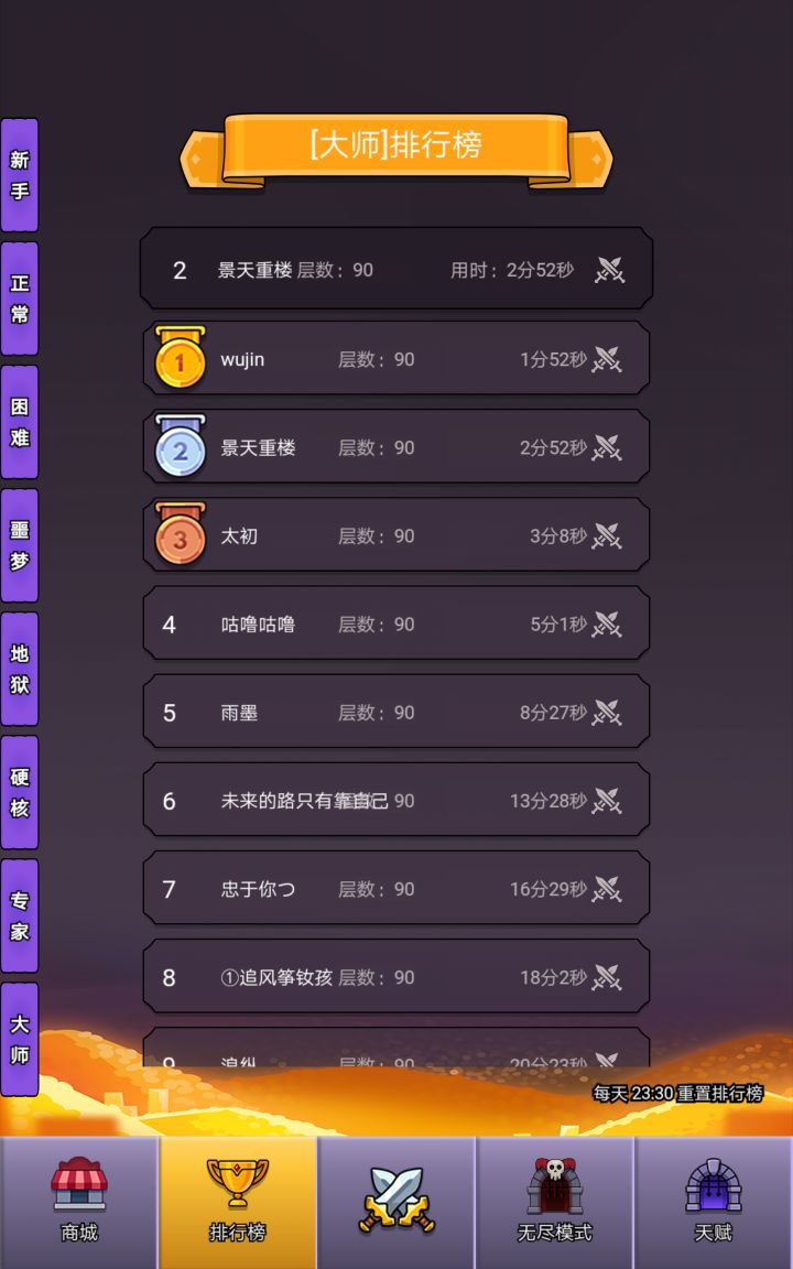 首先给大家说声对不起,之所以拖更了这么久,主要是作者个人工作上出了些变故,这3个月一直因为工作的事情花了很多时间,新版本一直到9月底才构思好有了些雏形,然后就就加班加点的做了1个多月,因为全是一个人做的,所以内部最后看起来并不是很多,但是也花了我很多的时间。希望大家看在我努力更新的份上,给点好评!点些广告支持一下,磕头了!!!更新内容:无尽模式:该模式取消了90层挑战限制,玩家可以无尽的挑战