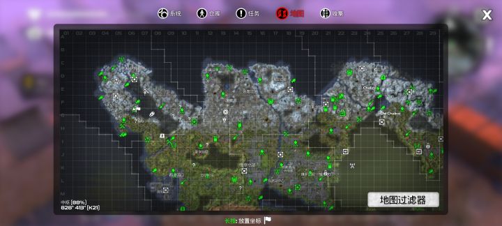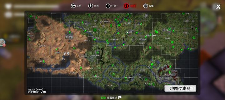 沙漠地区往东边走,解锁金字塔任务,获取防毒面具,然后尽己所能去解锁地图,