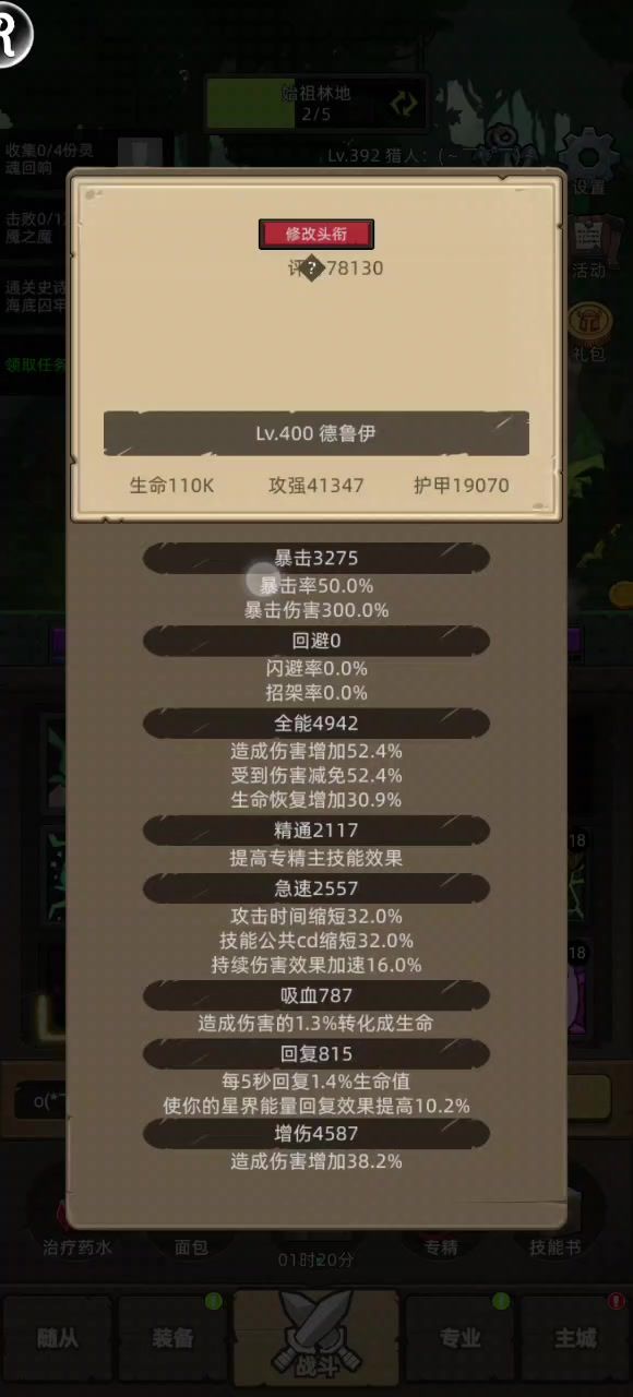 先声明,本帖是交流贴,不是攻略贴,只是个人想法,如有更好的玩法,欢迎交流。目前战力8.5万,不磕药过m14(ps:过m14时候是8万)。 一.首先是专精选择。选择狩猎和箭术双休,狩猎为主,箭术为辅。 由于战力比较底,输出专精怕扛不住,平时主要以挂机为主,所以果断选择的近战。(ps:全职业就术士,法师和猎人三个远程还没过m14,本身对远程就不报希望)。 不过箭术目前看很强势,偶尔也体验体验。 魔人没