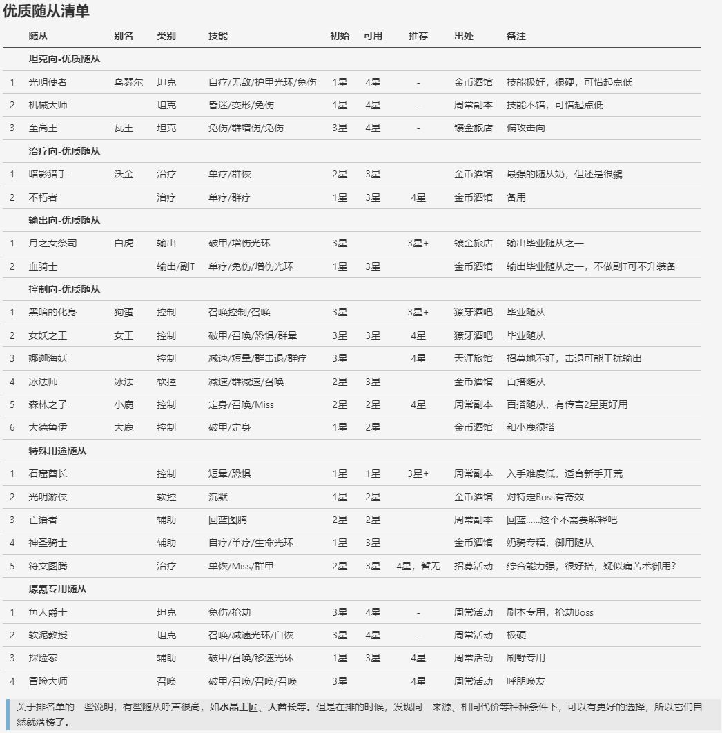 较全面的随从攻略