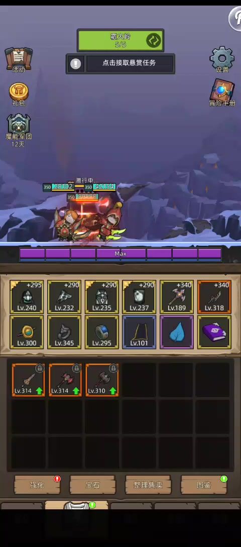 套装选择千刃套,因为boss防御太高不破防,千刃套有2次幽暗之刃,无视防御打完就隐身,项链选择黄金之心因为打的慢后面能叠满,叠满了后面就能破防,就能给他来5下在隐身了,武器选择恶魔或者人形加100伤害的,这样伤害最大化,副手来个50爆伤匕首,boss不是恶魔或者人形就换50爆伤武器,随从就用加百分之5攻强的,正在出战就能有效果,等他要出来了就让他休息再出战,就能一直保持百分之5的提升了,搞个无冕者