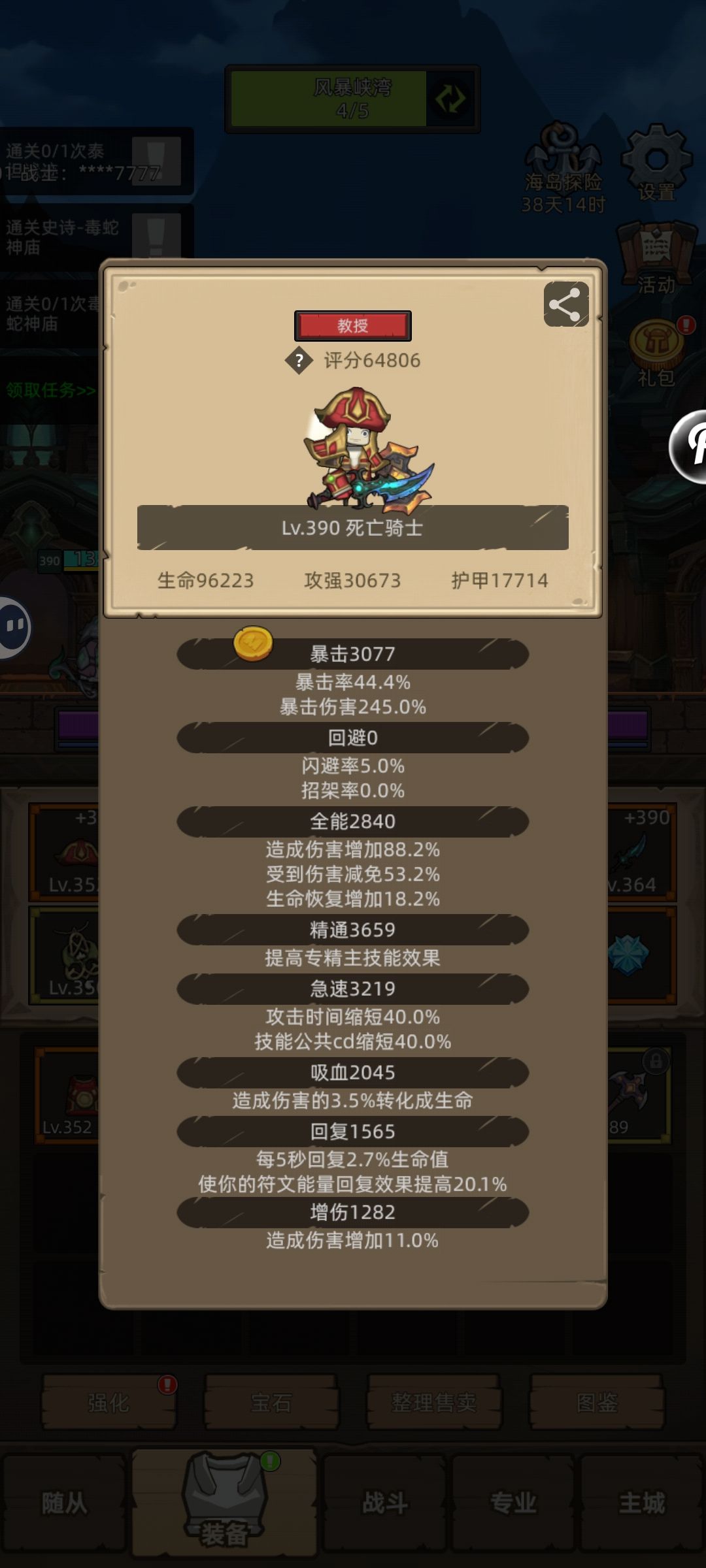 需要手操,自动战斗老老实实玩狂徒!!! 需要手操,自动战斗老老实实玩狂徒!!! 需要手操,自动战斗老老实实玩狂徒!!! 属性 暴击(3200)、急速(3200)、精通、增伤、吸血(1-2) 套装:生机侵蚀4件套 武器 主手:无情劈斧 副手:破心者猎刃 项链:灾厄主宰 戒指:铁棘收集者+饮恨者指轮 饰品:刺客文章(必带)+千钧重击 还可以选择带潜行之影(带这个饰品属性不要暴击,角色评分要求较高,大