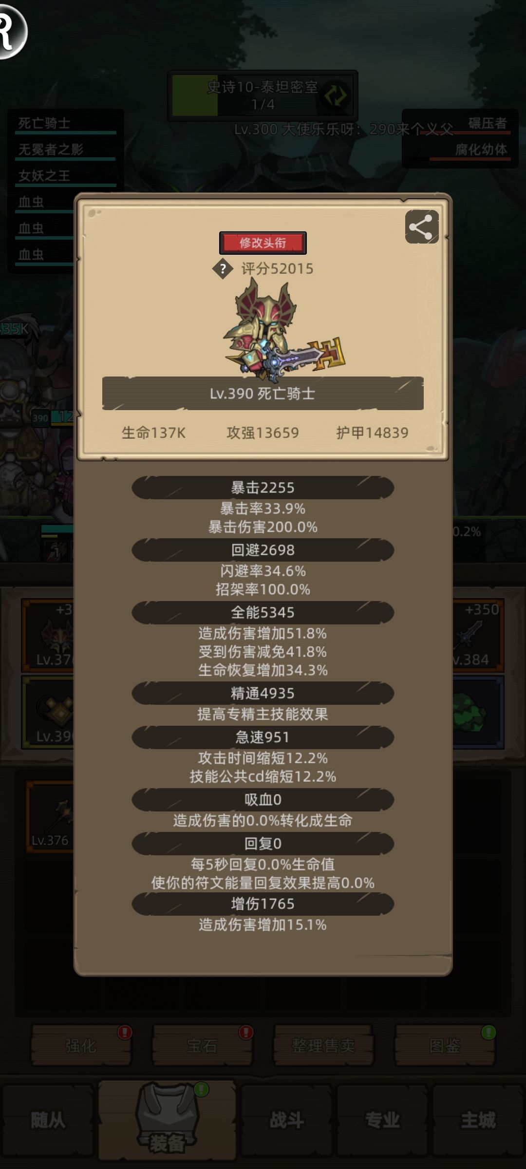 #异世界勇者dk 刚玩十几天萌新一个,开荒防战,目前4万战卡王宫10,然后说血dk强,今天玩血dk4天,确实强到离谱。 真理不知道强度,但是别人说难打,我没打过不知道,分享下打王宫的思路,首先血dk一定一定要圆桌,格挡闪避凑130以上,这个必须要齐,全能和专精这两个属性优先来,专精目前看来,我打13王宫,BOSS7万攻击,打我5万,我回5万,打底3700专精先,然后武器方面,在圆桌的前提下,备好