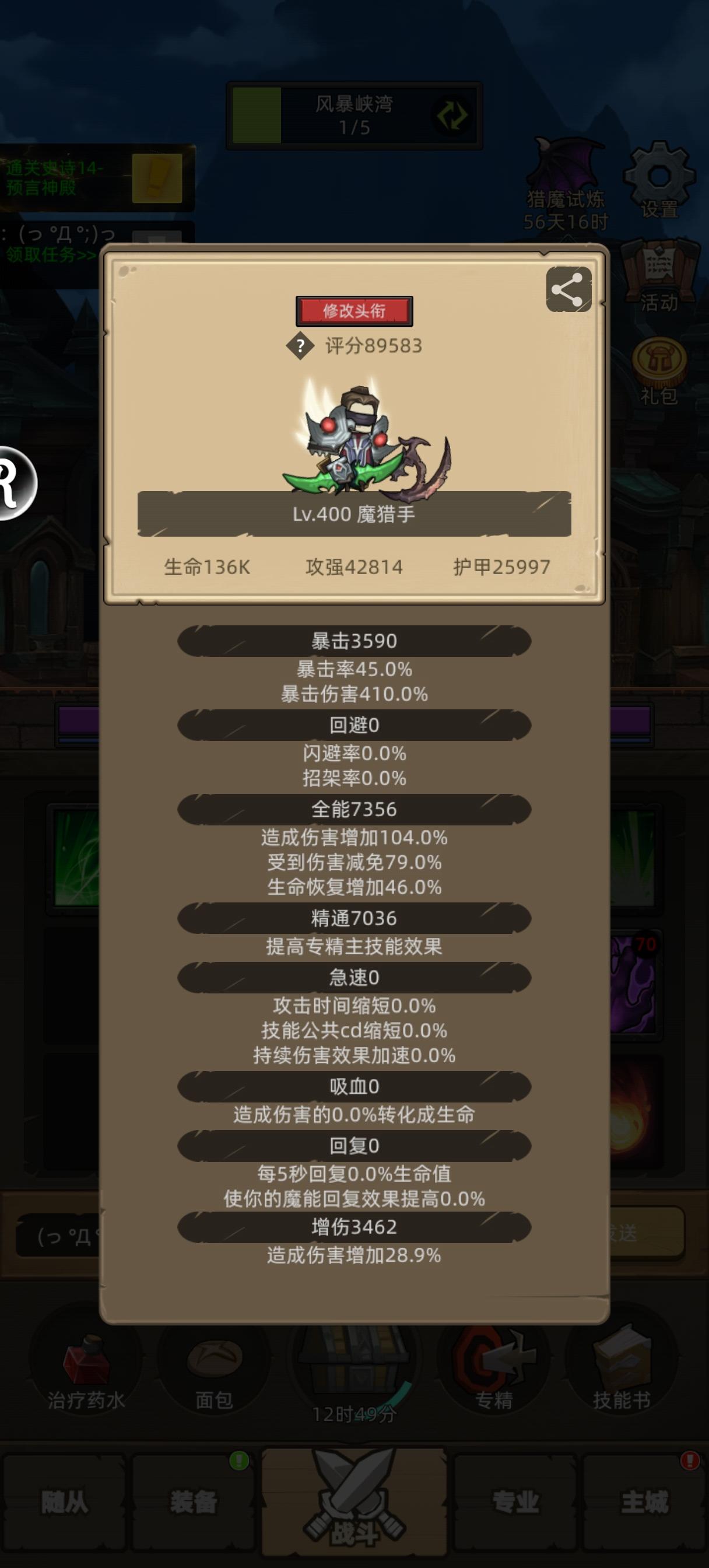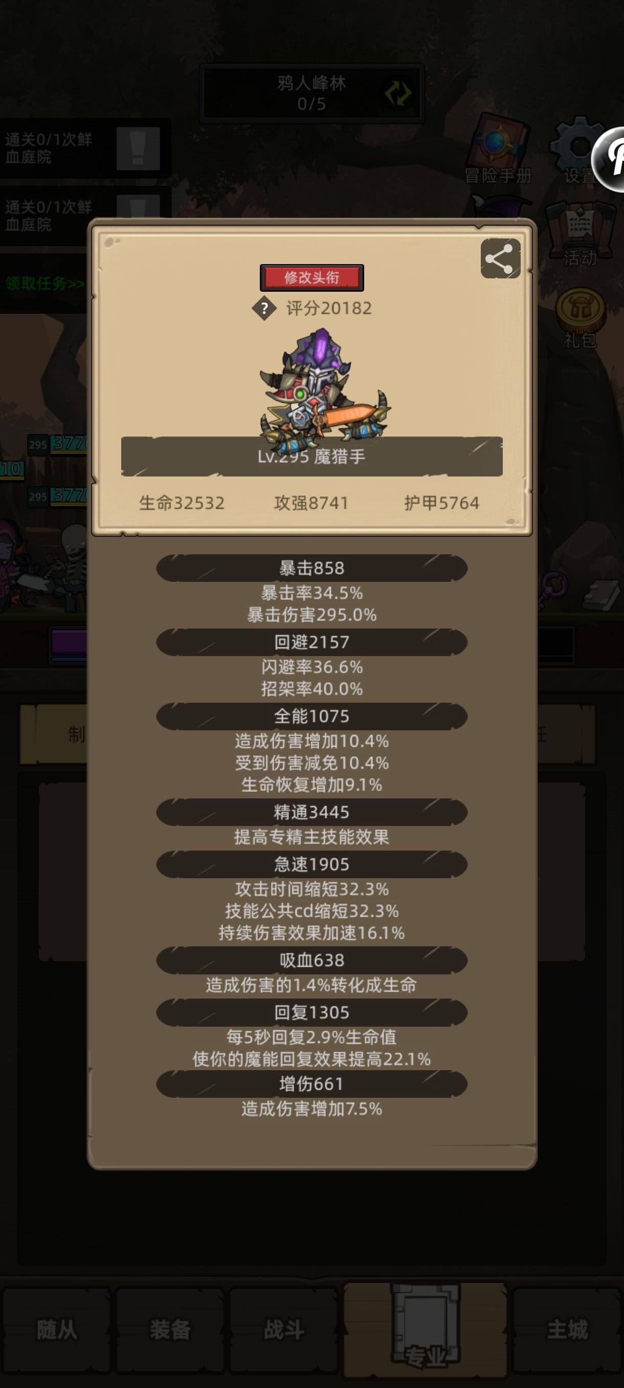 狩猎(失败残次品)个人见解,8.1w,不要喷我装备专属套完全没用,绑定水刀套。蓝剑+爆伤剑(暴击剑/普攻剑?)属性分配暴击,回避 3+0.5全能满,剩下全给增伤(半条吸血,一条急速手操)饰品红饰品只是补伤害用,两豆没用,总体可有可无,参考惩戒骑,暗牧的红主要带两个,重击猎刃(恶魔斩击+25%),战争猎刃(多重斩击+20%)技能雕文恶魔斩击(+25%),多重斩击(额外增加一次