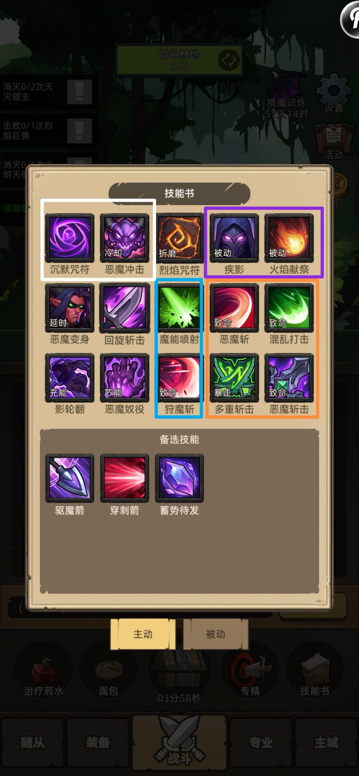 猎魔人专精定位:狩猎(半肉半输出)、箭术(输出)、魔人(输出)专精特性:1.低分挂机-狩猎(高闪避特性,缺少20%招架减伤,肉得不是很稳定)2.输出担当-箭术3.特效轰炸-魔人*挂机效率:箭术>魔人>狩猎随从选择:1.满圆桌女武神+船长/大王2.无氪金随从可以选择满圆桌至高王、满圆桌光明使者、女妖、不朽者或小狮子等组合注:“满圆桌
