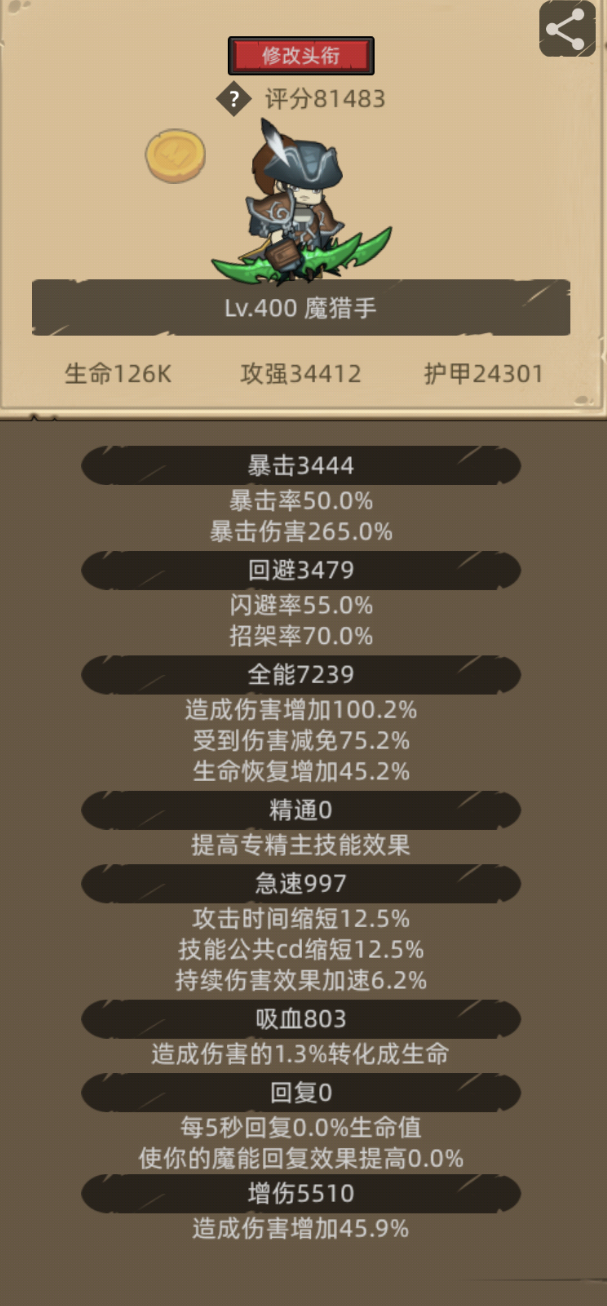 猎魔人专精定位:狩猎(半肉半输出)、箭术(输出)、魔人(输出)专精特性:1.低分挂机-狩猎(高闪避特性,缺少20%招架减伤,肉得不是很稳定)2.输出担当-箭术3.特效轰炸-魔人*挂机效率:箭术>魔人>狩猎随从选择:1.满圆桌女武神+船长/大王2.无氪金随从可以选择满圆桌至高王、满圆桌光明使者、女妖、不朽者或小狮子等组合注:“满圆桌