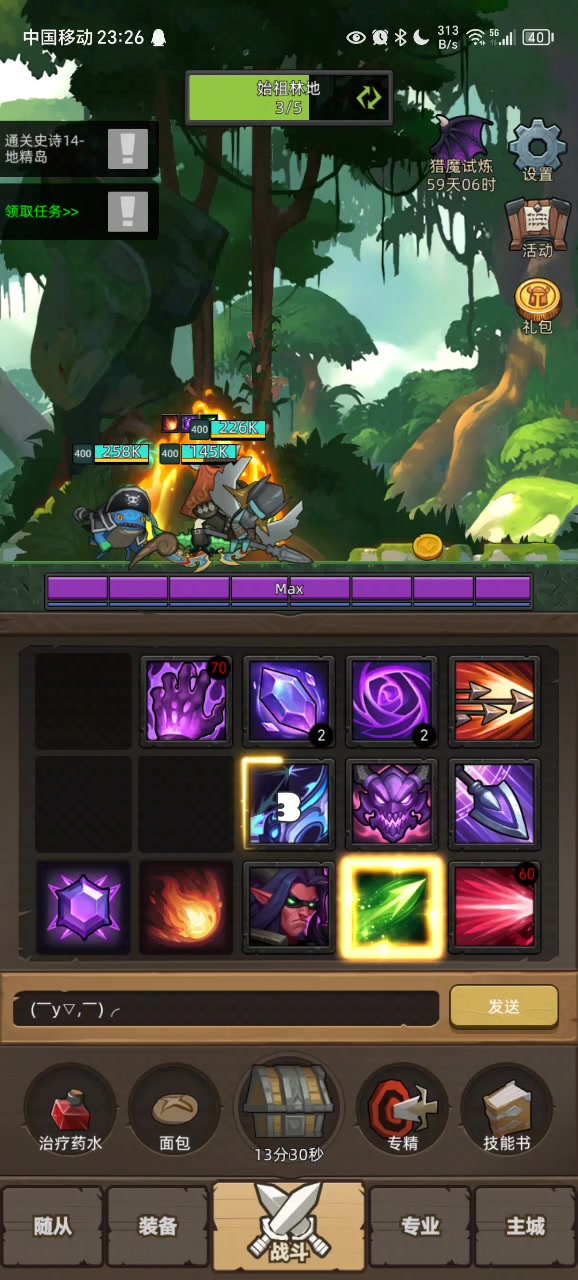 猎魔人专精定位:狩猎(半肉半输出)、箭术(输出)、魔人(输出)专精特性:1.低分挂机-狩猎(高闪避特性,缺少20%招架减伤,肉得不是很稳定)2.输出担当-箭术3.特效轰炸-魔人*挂机效率:箭术>魔人>狩猎随从选择:1.满圆桌女武神+船长/大王2.无氪金随从可以选择满圆桌至高王、满圆桌光明使者、女妖、不朽者或小狮子等组合注:“满圆桌