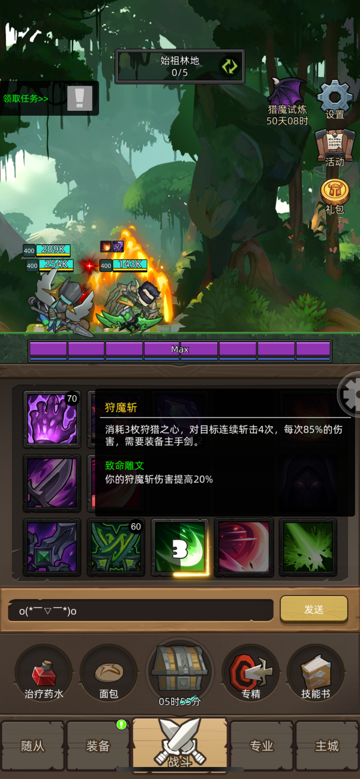 猎魔人专精定位:狩猎(半肉半输出)、箭术(输出)、魔人(输出)专精特性:1.低分挂机-狩猎(高闪避特性,缺少20%招架减伤,肉得不是很稳定)2.输出担当-箭术3.特效轰炸-魔人*挂机效率:箭术>魔人>狩猎随从选择:1.满圆桌女武神+船长/大王2.无氪金随从可以选择满圆桌至高王、满圆桌光明使者、女妖、不朽者或小狮子等组合注:“满圆桌