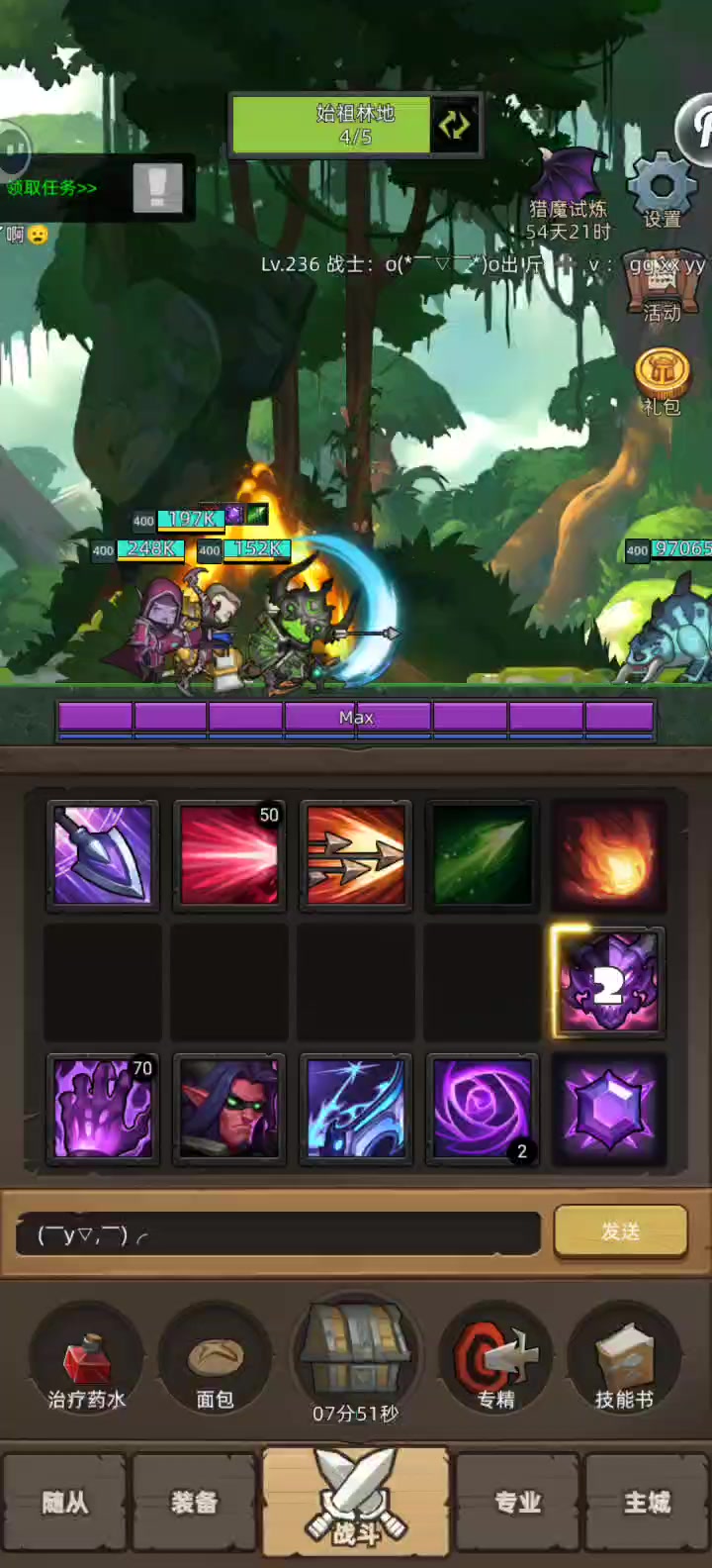 猎魔人专精定位:狩猎(半肉半输出)、箭术(输出)、魔人(输出)专精特性:1.低分挂机-狩猎(高闪避特性,缺少20%招架减伤,肉得不是很稳定)2.输出担当-箭术3.特效轰炸-魔人*挂机效率:箭术>魔人>狩猎随从选择:1.满圆桌女武神+船长/大王2.无氪金随从可以选择满圆桌至高王、满圆桌光明使者、女妖、不朽者或小狮子等组合注:“满圆桌