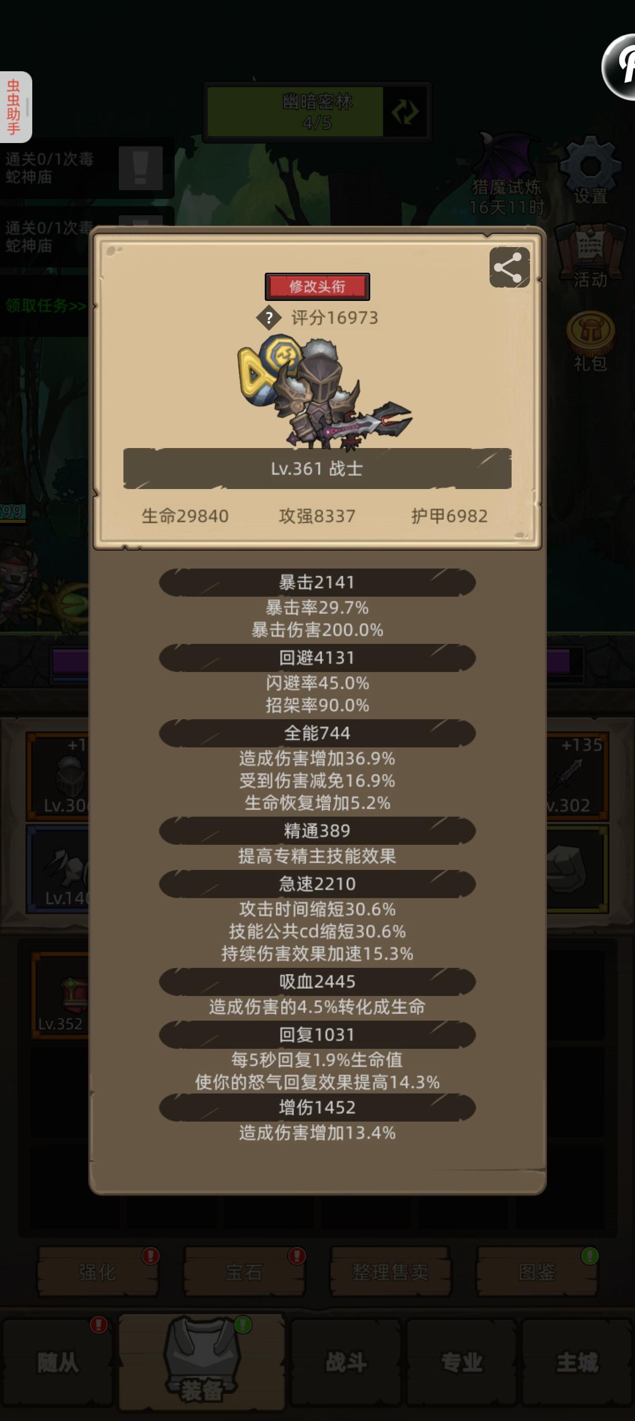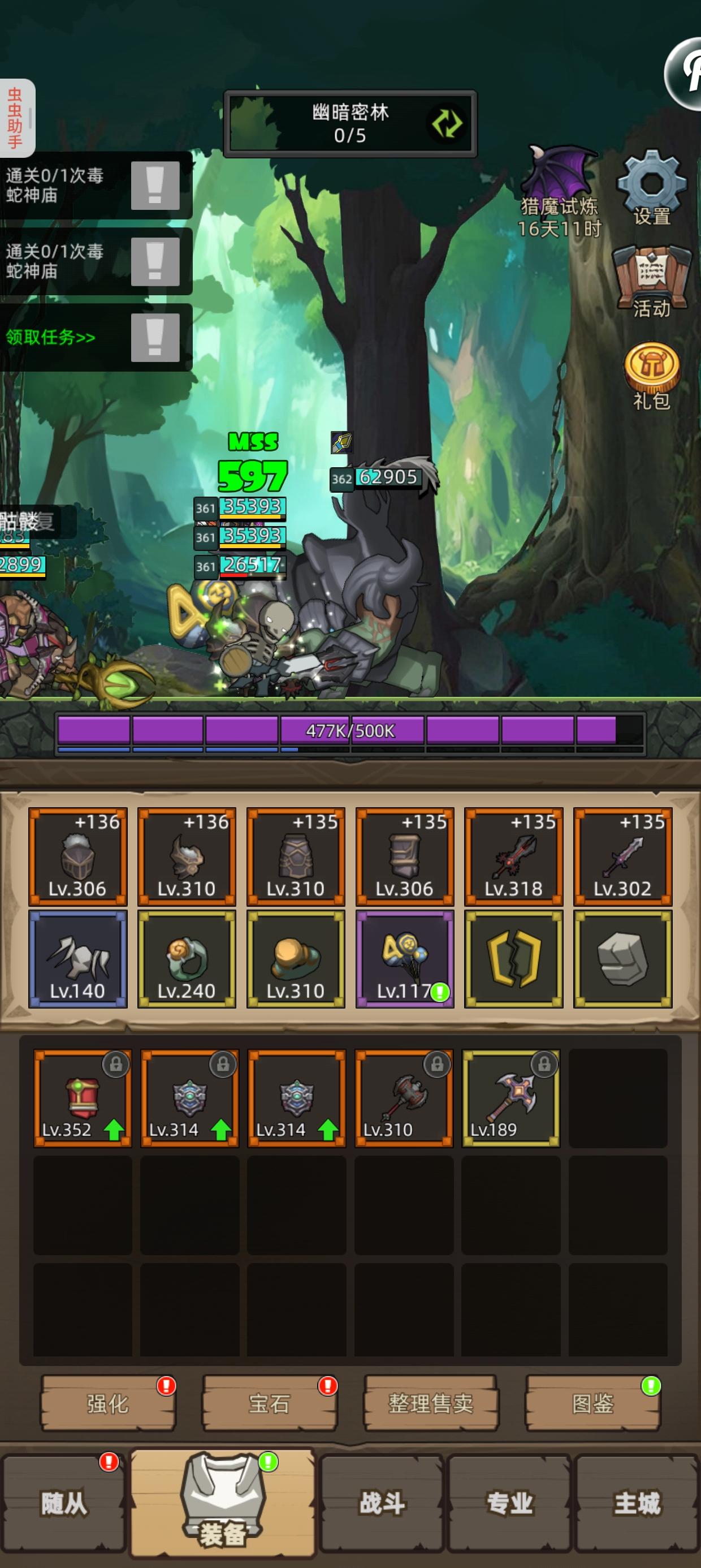 这周400k金币捡漏一个铁星后打地下城稳多了,然后一路刮痧刮到暗影大陆。刚开始刮的时候靠凑满130的圆桌苟住,但迷雾大陆最后那个大酋长每10秒回5%血,不抬高输出效率根本刮不动,就换了把泰坦守护者,嗑药,靠心脏打击打输出,勉强刮过去了,确实玩到中期全精比圆桌好用。刚刮完暗影大陆第一个地下城,不开鲜血契约的话就只剩心脏打击有伤害了,因为攻强比怪物护甲低一大截,刮了20多分钟才刮过去,泰坦之心+心