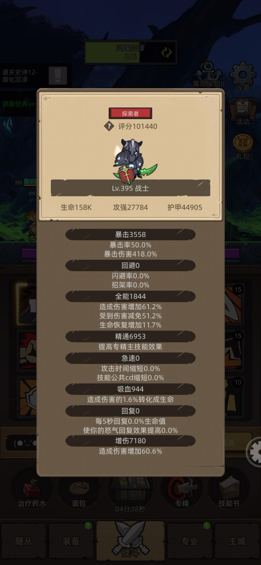 一直喜欢盗贼中意敏锐,可是一直没什么可玩性。海岛探险2马上结束,这一版的红黄饰品暗影之魂、瞬击手册终于让敏锐贼站住了,核心是黄饰品瞬击手册。宠物一前排一治疗,女武神(圆桌减伤)和符文图腾(全能生命)感受比较好。装备职业套装冷酷执行者,武器爆伤和技能伤害,感觉爆击武器应该也适用。属性主全能,暴击满,回复4000以上(还有点卡顿,不丝滑)勉强够用。战力须8万以上,史诗9以上如果是黑暗庄园、泰坦密室、海