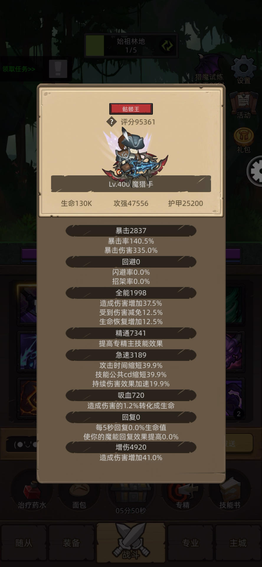 猎魔人专精定位:狩猎(半肉半输出)、箭术(输出)、魔人(输出)专精特性:1.低分挂机-狩猎(高闪避特性,缺少20%招架减伤,肉得不是很稳定)2.输出担当-箭术3.特效轰炸-魔人*挂机效率:箭术>魔人>狩猎随从选择:1.满圆桌女武神+船长/大王2.无氪金随从可以选择满圆桌至高王、满圆桌光明使者、女妖、不朽者或小狮子等组合注:“满圆桌