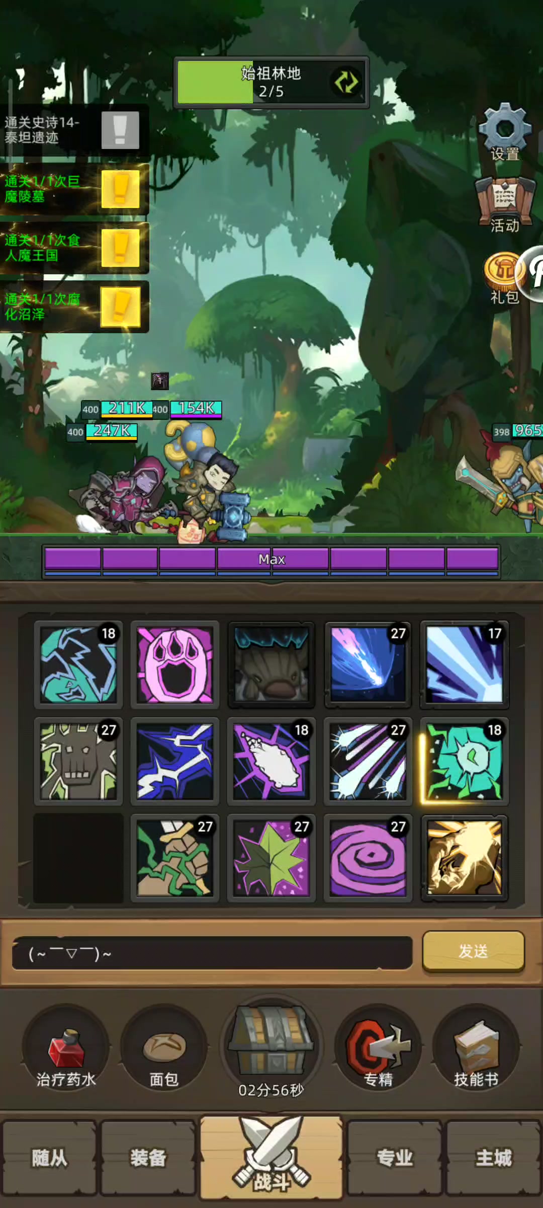 几周没打了,随便玩玩。照例0吸血0前排,船长奶也够用了,不打算补披风和项链了,就这样吧,快也快不到多少,我估计拉满多几个暴击最多最多快个三四秒,有这精力还不如多喝两泡茶#异世界勇者