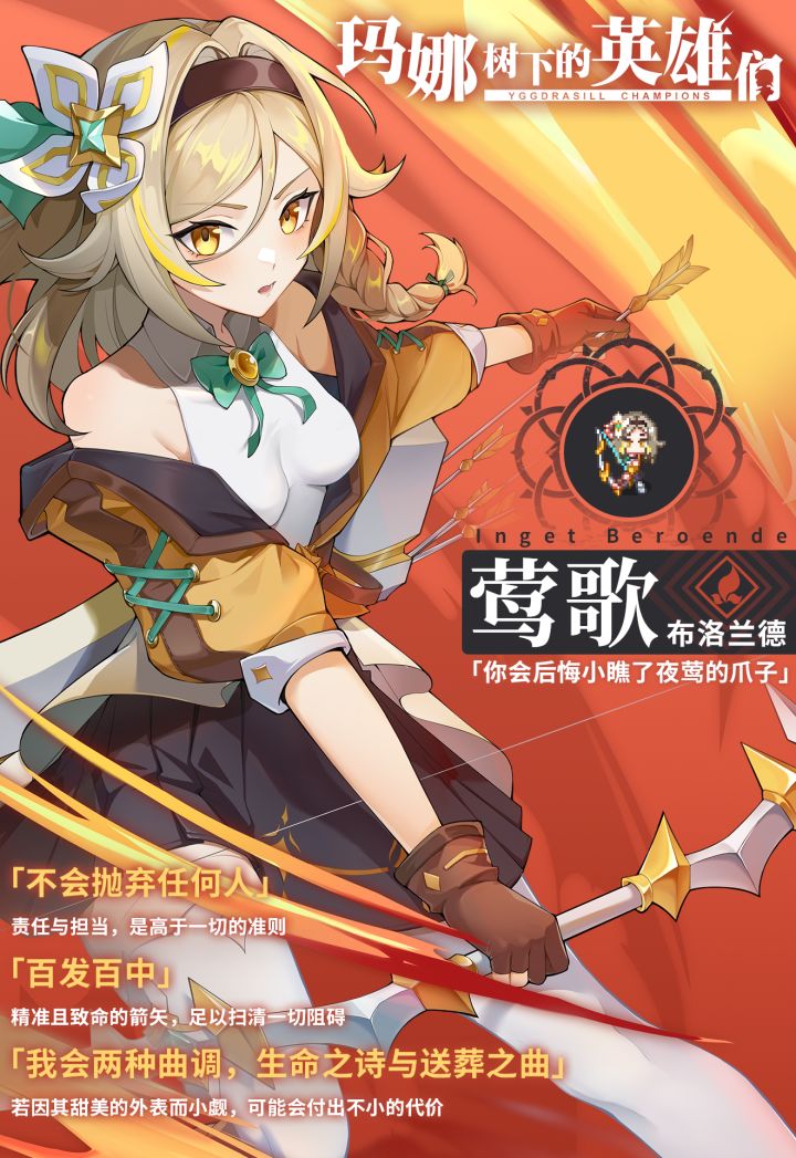 莺歌有个特别的爱好。闲暇之余,她会弹奏起随身携带的小型曼琴,将探险的故事编织成歌谣缓缓道来。每当回城中补给时,莺歌也会在小喷泉旁歌唱,人们往往驻足聆听,孩子们也会手拉着手向她跑去。「......咦?歌声?是莺歌姐姐!不知道莺歌姐姐今天会告诉我们怎样的故事呢,好期待呀!」了解更多游戏咨询,(跳转失效可搜索697635867)