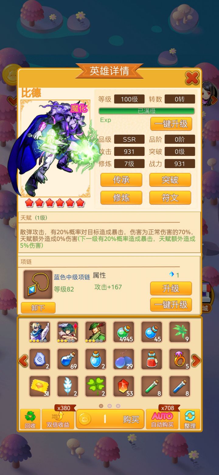 N卡:小魔女,巴鲁。绿叶喂满200后,就回收卖金币。R卡:巴特首选培养(转盘可以获取),米蒂亚,杀马特,蝶精灵(半推荐,也可无视)。赏金(半推荐,给时间多的人挂机)。SR卡:虚空行者,贝丝,蓝精灵,妖术师,美杜莎,花灵。SSR卡:玲玲,霸道,路易斯,海之女王。蛋的sr与ssr都推荐,很强很离谱。主力巴特可以一直培养,果子可以一直喂。半主力巴鲁,霸道,路易斯,与蛋里面四英雄。其它没在主力