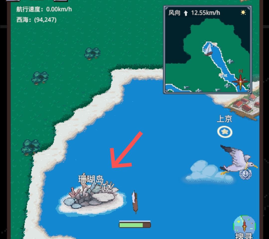 献给跑商疲倦的航海家♡(*´∀`*)人(*´∀`*)♡ —— 捞珍珠之前需要先完成一个任务。 此任务没有等级条件,开局就能划过去接。 位置在西海(94.247)。 上京的隔壁,红箭头所指的→珊瑚岛。 与珊瑚岛贴贴就能触发任务ฅ(*°ω°*ฅ)* 任务内容是商人大大希望你以高达2w金币卖出他的珍珠。就会给你一张捕捞图纸,帮助你更容易捞到珍珠。 那么就需要寻找一个喜好珠宝的城镇了↓ 这里推荐从上京出发