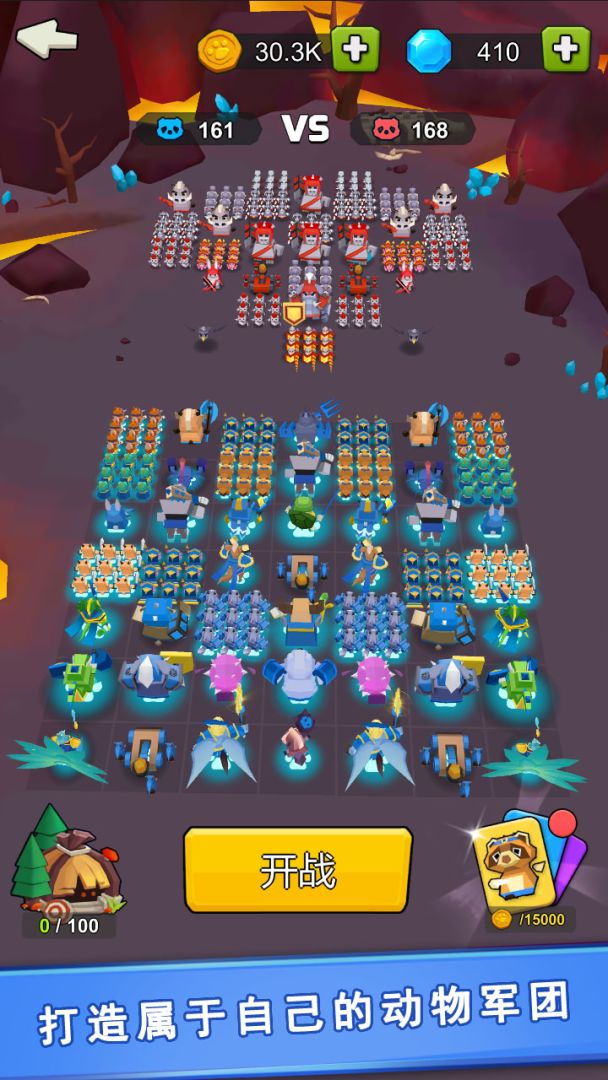 目前已有50+动物等你解锁,每个动物都有自己独特的作战方式,灵活搭配,以弱胜强,快来打造强化你独一无二的动物大军吧!