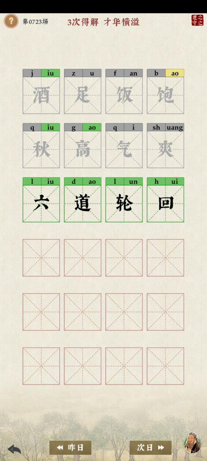 因为已经尽量每次都是不同声母韵母组成的成语了,但我居然能完美错过所有部分正确答案,就很离谱啊😂😂😂😂