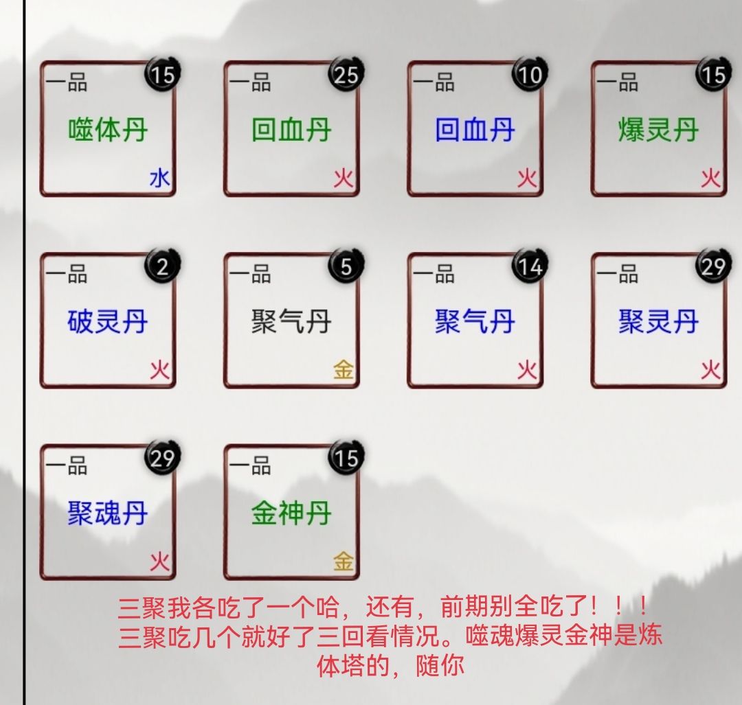 刚入坑的萌新玩个几天基本都熟悉了游戏的玩法了,还有些细节可以和大家说说 1.五行影响装备,丹药,打坐的灵液获取,地图的怪物强度,世界boss的伤害,最好的属性是和自己属性相生,装备和丹药都可以洗练到相生的。 2.丹药品质影响的是加成的效果,丹药等级和五行影响的是加成的次数。丹药加成受五行加成80%到120%效果。丹药品级和对应职业相同时效果为100%,丹药品级低于对应职业一品则药效降低40%,叠加