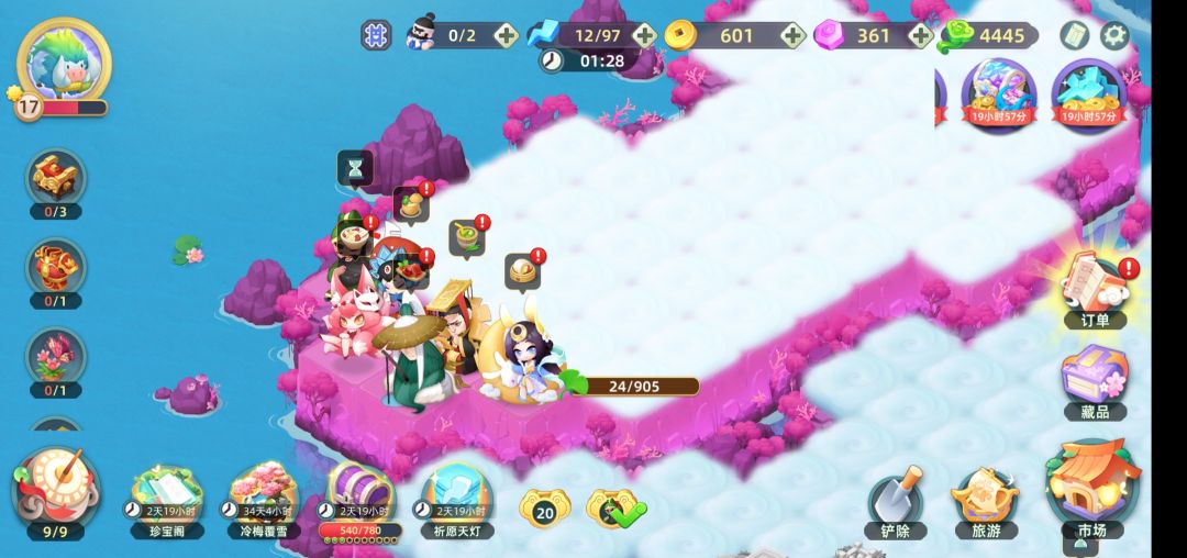 给新手们一个提醒吧就这个三颗星的,量力而行,尽量先开那些图上自带的,有额外的再开这个,一波波开,就开出来一波处理一波,不要全开了,不然就像你们看到的评论区里的一大堆没格子开不动的,还有就是分类整理吧,也不需要多整齐,至少一类在一块,没开一波整理一波合一波,不然也是一样,最后没位置被迫一天退游,还有个惊醒,就内个订单出来的玉如意,是可以向上和的,越往上合越赚,如果开图需要的玉如意多可以攒着不要开等够了再开