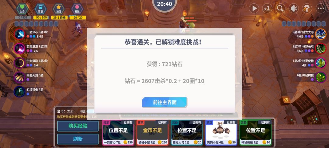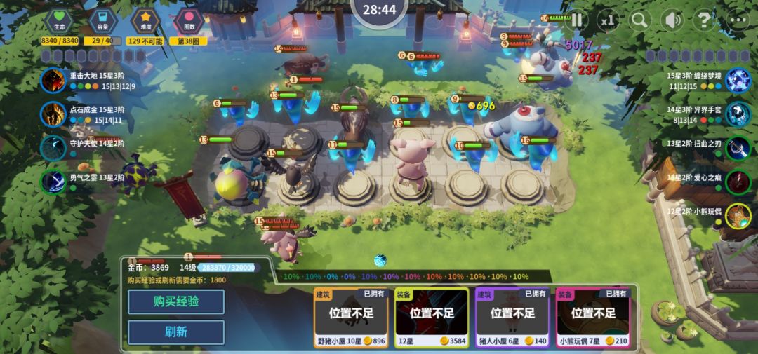 核心玩法,就如制作人而言,逆向塔防,轻度肉鸽。初上手时,的确玩法上的新鲜感带来的游戏体验很不错,不过在屡次失败和摸索后,游戏内核系统的单调性逐渐显现。主要体现在三条设计线上,建筑系统中,目前看幽灵收益是最高的,野猪的收益较低,其他几个建筑的类似度比较高。建筑的选择难以形成策略性的选择,只能看发牌员的心情。装备系统中,目前看,梦境缠绕的优先级最高,主属性是吸血,同时二阶、三阶是唯一能提供攻击和血量加成的。技能系统中,我个人比较推荐打 BOSS 用终极大地,二阶眩晕、三阶减攻,清怪用暗影毒缥或者阳炎冲击。总体来看,三套系统的设计中,都有 TO 级别的存在,并与其他选项来开明显的差距,而其他选项之间的差异化和实际效果并不明显,因此,无法形成有效的策略性或者多样化的流派。