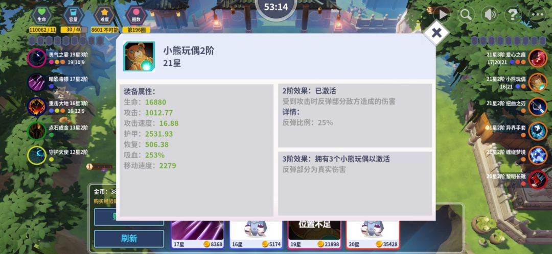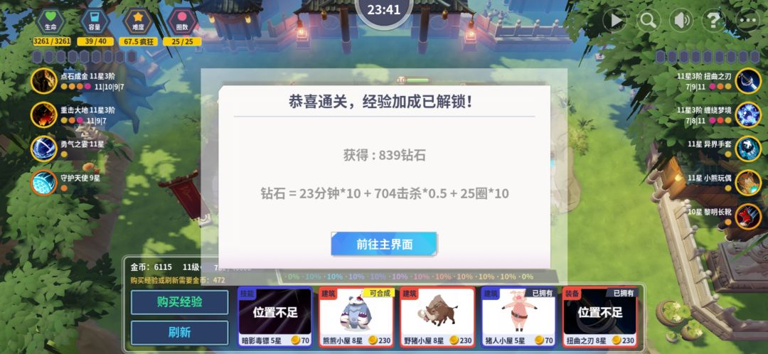 个人全方面通关秘籍(保姆级别,有手就行) 前6圈无脑买有什么买什么 6-10圈之内图二蜗牛,野猪,幽灵,狼 等级1-4级都可以,个人量力更换等级 个人推荐建筑不要超过英雄等级 10圈以后个人选择升本或者找装备斗可以 个人推荐无脑刷装备剑和点金无脑拿 最后更换时发育好建筑就保留 发育差就留1-12级的幽灵 更换1/2/3的蜗牛,刷到4的蜗牛 卖掉1的蜗牛,其他建筑同理 发育差,就慢慢全部更换幽灵 舍弃顺序,蜗牛,野猪,狼 总结6关之前有啥买啥 10关之前凑出建筑 10关以后无脑刷装备