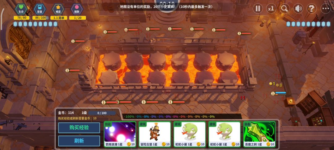 结果真过了... 属性随意,没满就一直升 个人意见别要太多怪,毕竟提升难度的后期才能删怪。我就只要了这几种 选了🐺人要三阶 其它各要1个,就这样最后两圈的强度都…… 群攻是好东西,所以我选择技能要了剑雨,水晶干了三阶,其它如视频所示 最重要的就是在三五圈过后要有意识的控技能和装备等级,十圈过后决定三阶或两阶的绝不能再动,只是小升一级都别合成(不要惋惜什么没买这个两阶的,下一刷出了刚好上一阶的加下一阶的~后面很难,非常难刷到你想要的技能装备所合适的等级了。钱也浪费完了) 总体感觉弓箭手比神秘人可操作空间大,提升难度后期肯定也更好玩~站桩输出才是真正滴ADC🤪