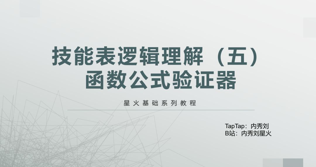 【星火基础】技能表逻辑理解(五)函数公式验证器