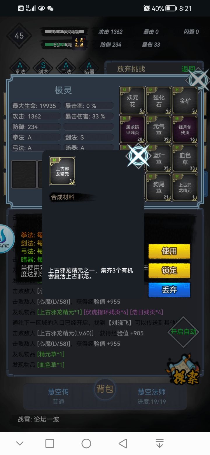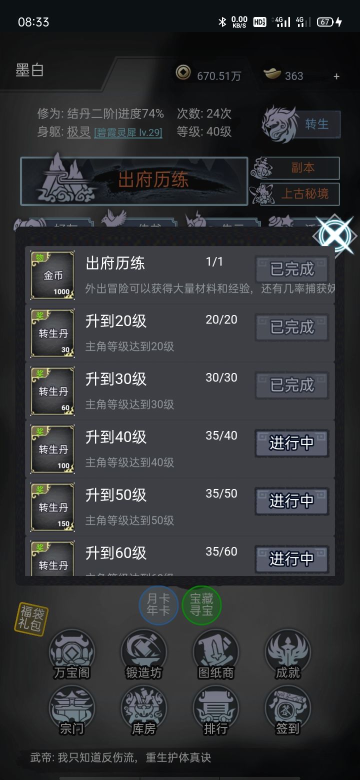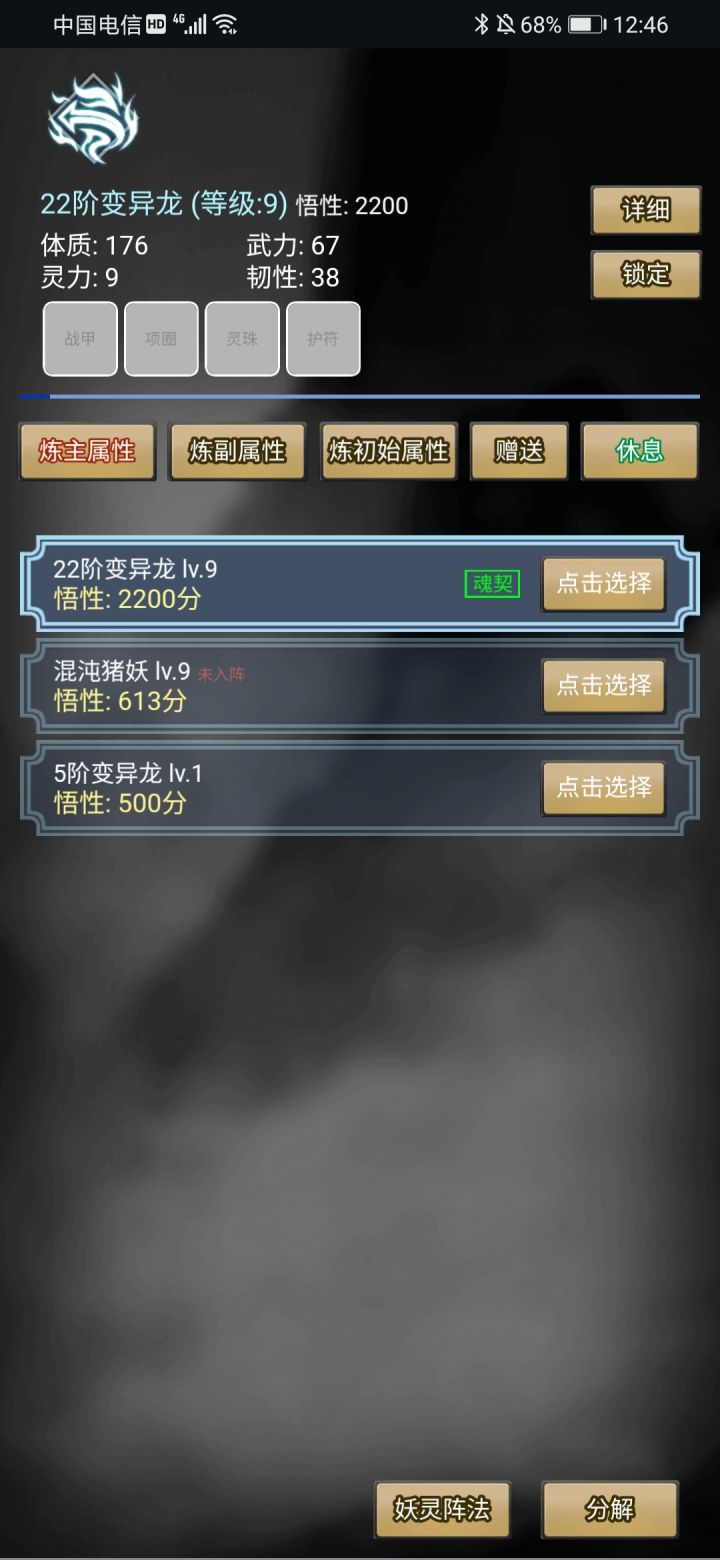 先说游戏的重要组成部分技能+修为+宠物+装备+炼丹先说技能技能分为身躯技能、装备技能,灵兽技能身躯技能共有四个,一个身躯特质,三个身躯技能。身躯特质的获得比较困难,需要使用进阶碎片升级身躯属性,达到一定标准才可以获得以下为获取标准及对应的属性三个身躯技能身躯技能转生有几率获得,想要替换技能,需要用洗髓符去掉不想要的技能,然后等下次转生获得或者用技能书,技能书和洗髓符都可以在宗门兑换