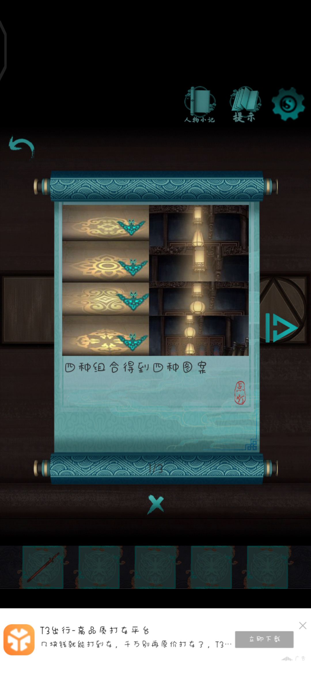 这款道家风格的竖屏解密游戏,为勾陈一工作室出品,这里插句题外话,勾陈为六壬起局的一种相,所以从名字来看,该开发商对于道家还是有些了解的,画风看着就一般了,和一般恐怖漫画一样,这里请记住这个符,然后按照要求将符咒方位摆好,解锁出铃铛,根据铃铛晃动的顺序,依次点击铃铛,进入正式章节,门上画着方位,我们按照顺序移动罗盘,开门之后进入祠堂,把灵牌供上后,将画黑叉的字记住,点击字块,分别为哭,随,难,往。得到钥匙和桃木剑,开启小门进入下一关,取下两个灯笼,拉开灯线,按照窗上的窗花依次点击按钮,顺序是2314,回到厅里,把花插上,记住花蕊的个数 ,记住对着的方块,按照要求点就行了。顺序不重要,成功之后得到铜钱和那句话,来到客厅,把铜钱安上,按照天连水尾水连天的方式,排好,窗打开,找到灯笼,挂上灯笼拿钥匙,进入另一个房间,找到盒子,取铜块,盒底有顺序,摆一下,得到茶壶,茶壶放桌上,看到机关,顺序就是帘上的顺序,摆好后得到灯台,回到灯那,把上面的画拼一拼,灯亮了得到一柱香,插在香炉前,然后我就不会了,开了一下提示,找灯油,找到了灯油,开棺。这个僵尸姐姐挺好看,最后跟着我的顺序,画符,第一关结束,这个游戏肯定是不如纸嫁衣的大制作,但是我玩的感觉,这里面有意思的点很多,难度适中,大家可以冲!