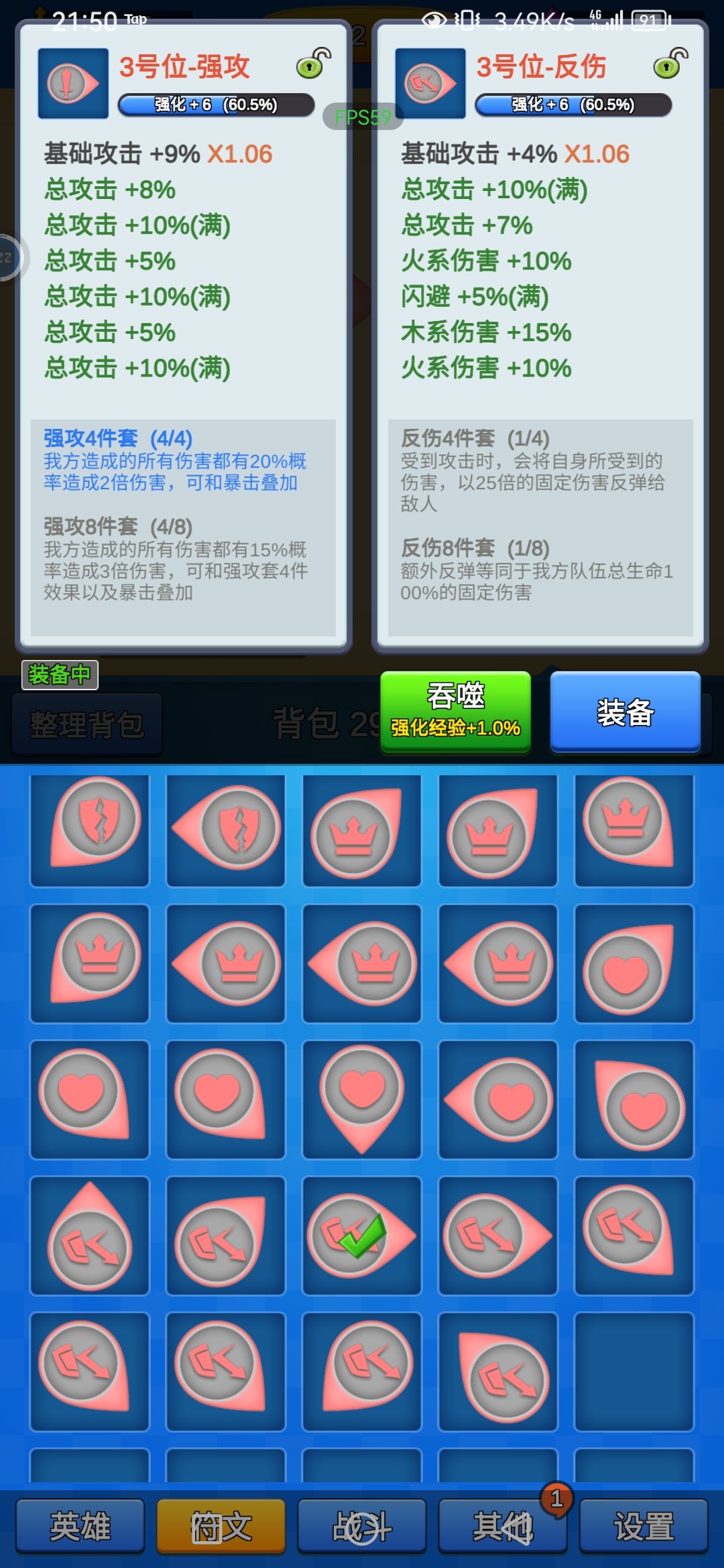 左边【试玩】:这个才是桌面独立安装的,性能更好,更流畅。 右边【开始游戏】:这个是运行在tap沙盒内的,开启游戏需要先打开tap,在tap内才能打开游戏。 两个入口对应两个不同的存档。 鉴于经常有玩家更新后进错入口,发现存档不一样,特此说明。 最简单符文攻略: 1.选择一个符文套装种类,按你喜欢都行 2.符文8个位置属性选择 先定义一下概念,纯净属性:指一个符文所有属性种类都一样的 然后符文属性 1