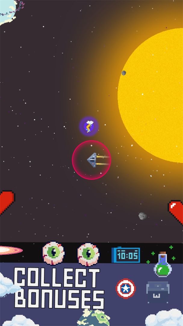 游戏不大整理采用的是像素风格,独特创新的游戏玩法,在游戏里玩家驾驶着一架飞机在庞大的宇宙汇总探索,在探索的过程中会有各种有趣的物体可以收集,同时也会出现各种危险,玩家需要注意躲避,根据游戏的进程难度也会越来越高。