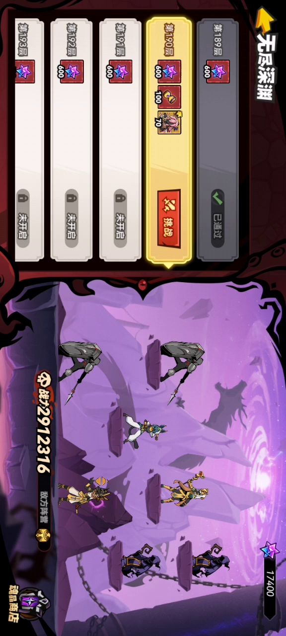 爬塔第190层,总是卡死。切后台再切回来直接黑屏,只能重新登录。
