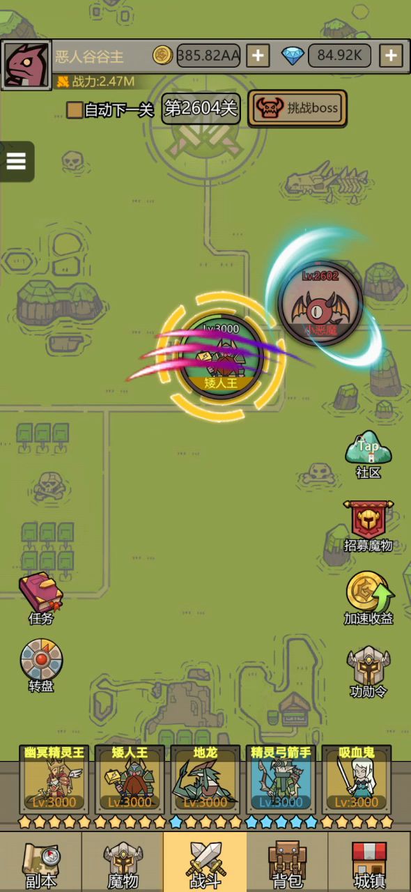 一叶乘风大佬的更新版#新手入门 1.开局福利:开局过完新手教程左边会有一个变异传说自选箱,自选箱建议开变异矮人王(T0盾)用到中后期没问题,右边会有一个新手福利过20关送一个变异精灵王(T1刺客)开局这两个魔物是比较好用的。 2.开启地精银行利滚利:开局领完所有兑换码后钻石不要急着花,推一点点关卡就会开通地精银行,地精银行一级的时候,最大额度可以存储两万钻石,返回三万多,净赚一万多钻石,而且每天都