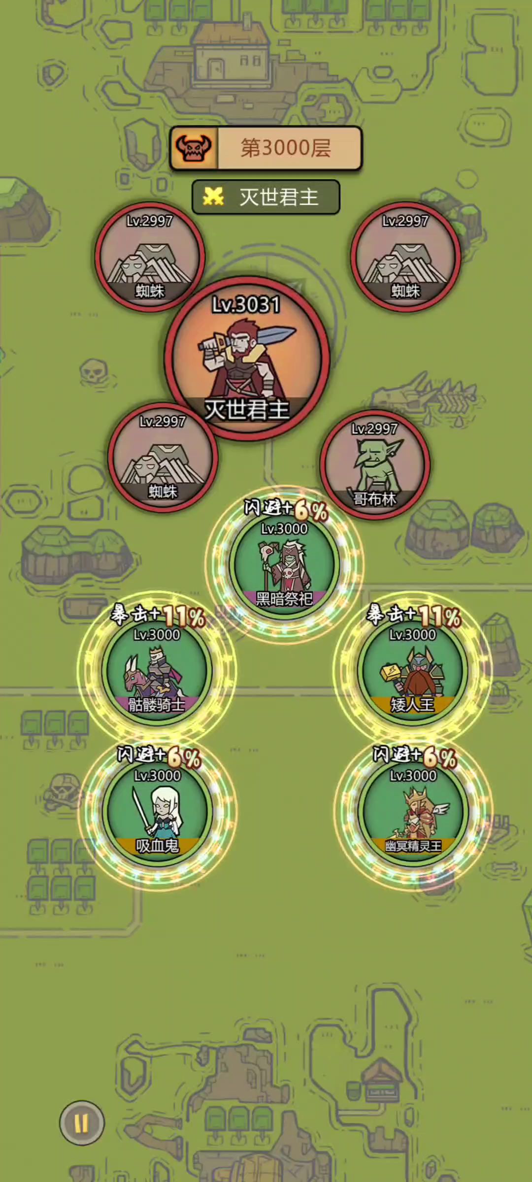 Hello,大家好我是小萌新! 近期各大官方群内都在讨论阵容问题比较多,由于新的游戏环境导致旧的攻略可能不太好用了,正好最近我也开了两个小号,可以把近期的游戏心得分享给大家,希望大家能够少走弯路,早日毕业 ~ (2022.10.20日修) 本篇会讲到魔物的技能,为了防止有些萌新玩家看了迷糊,先放一张毕业阵容图,后面慢慢解释~ 如下图: 毕业(7500关)最低需要: 一转幼体蜘蛛子(10星最优) 三