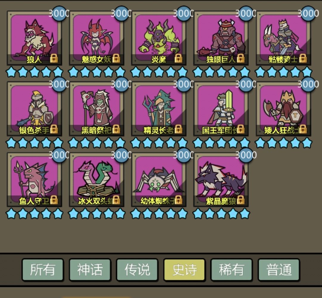 【图鉴】史诗魔物(紫卡)大全10星战力与技能分享