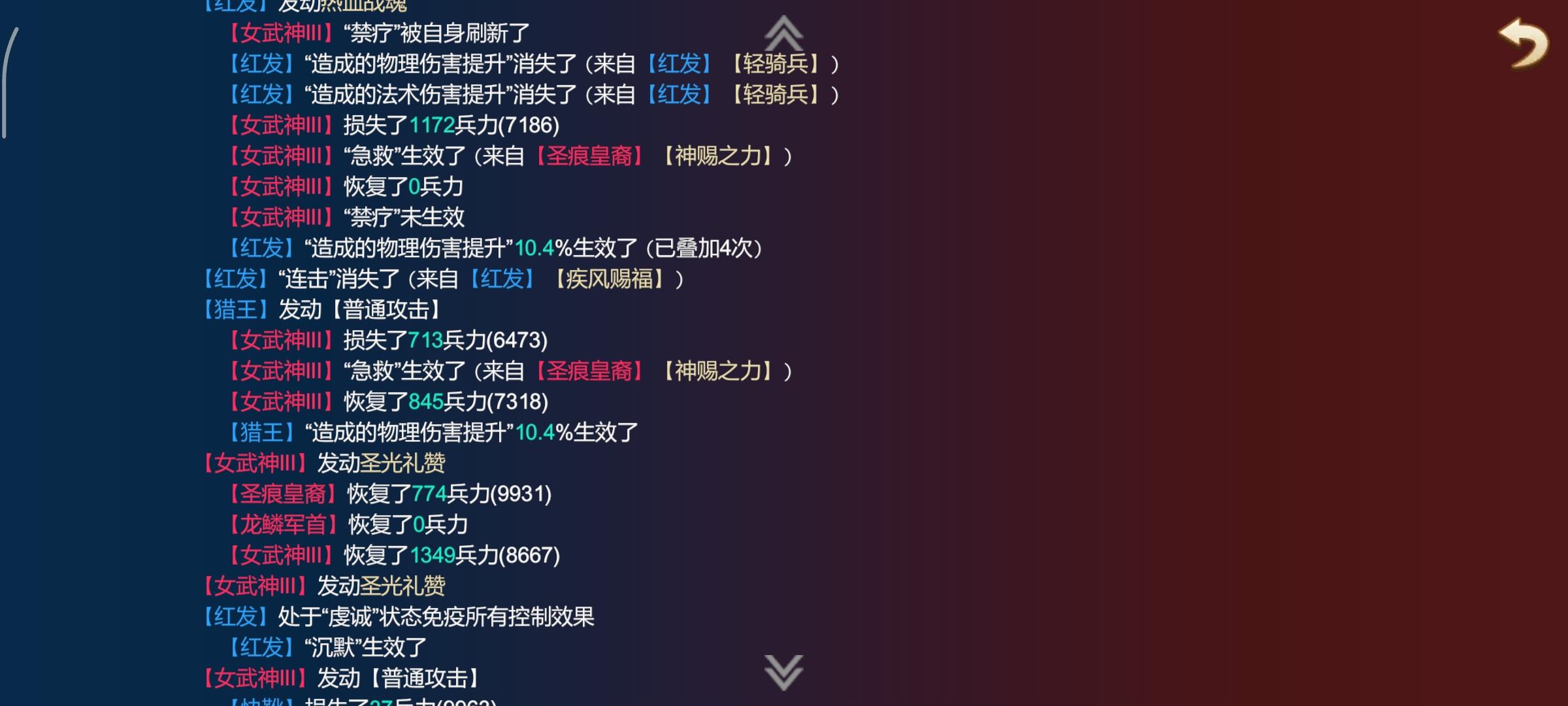看战斗日志,红发第一发平a打出了禁疗效果,第二发平a没有触发禁疗,但是随后猎王行动打了一下,还是会回血?更离谱的是他还可以给自己加血?对面阵容里面也没有虔诚之类的,那这个禁疗能禁什么,禁主动技能加血?