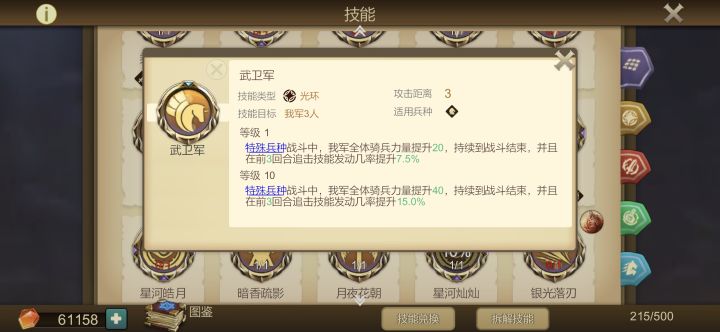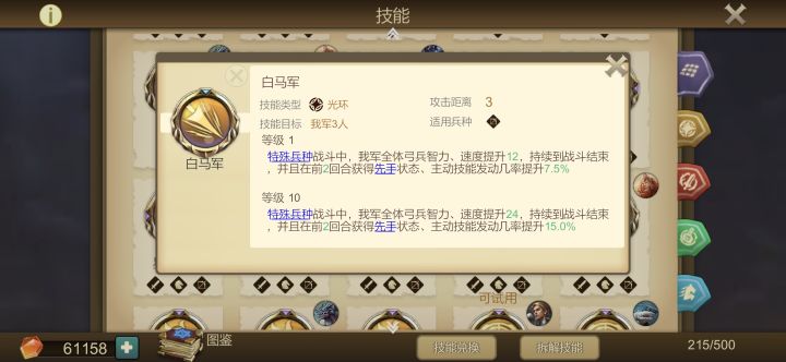 都是光环技能,别的增伤技能有3回合,为啥白马军加主动概率的才只有2个,主动技能都是这个游戏最底层了,只有两个回合更不玩不了啊。策划,赤脚能不能加加多一个回合啊