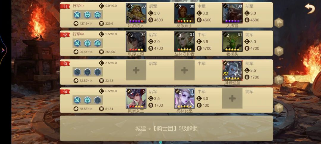 实践才能出真知,我只能从可能性上去设计。我们可以一起讨论机制,比如你第1队和第2队,火舞和猎手是不是调换一下会更好,恶魔猎手显然是越打越强的,更需要续航,火舞是有爆发能力的,跟辉耀王配合能压制血线。只是提供思路哈