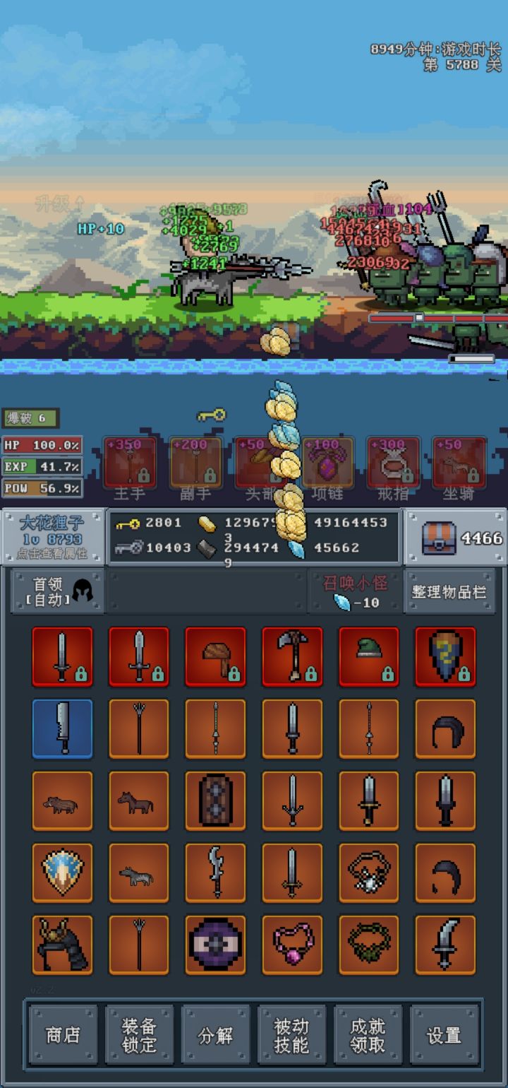 很简单,但是很上头的挂机游戏,潮水般的怪物涌上来砍瓜切菜,强烈推荐